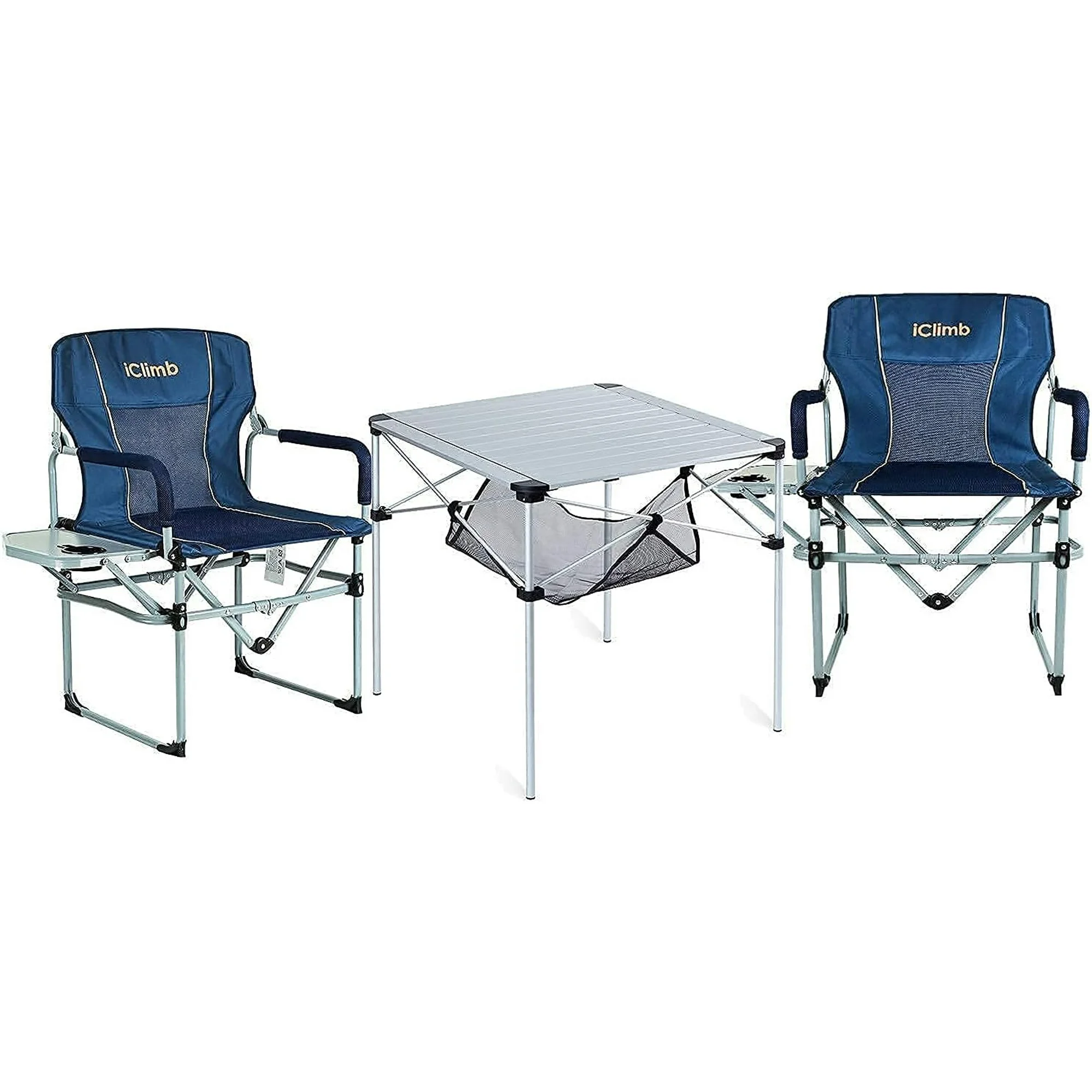 LALANG 2 Heavy Duty Compact Folding Chair and 1 Folding Square Table Bundle for Two Adults Camping, Picnic, Backyards, BBQ