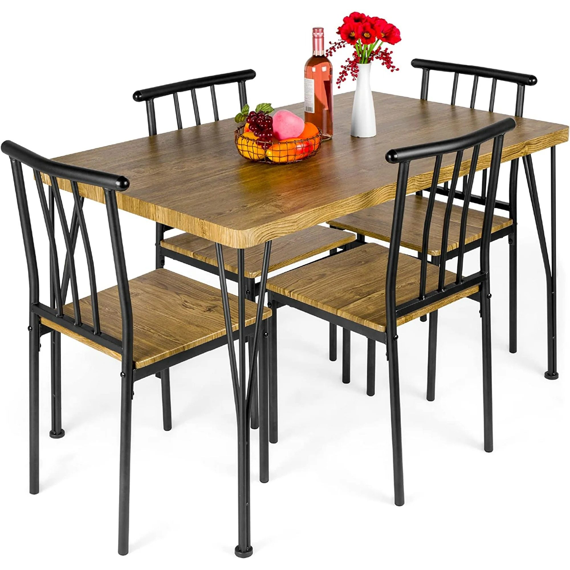 LALANG 5-Piece Metal and Wood Indoor Modern Rectangular Dining Table Furniture Set for Kitchen, Dining Room, Dinette, Breakfast Nook w/ 4 Chairs - Brown