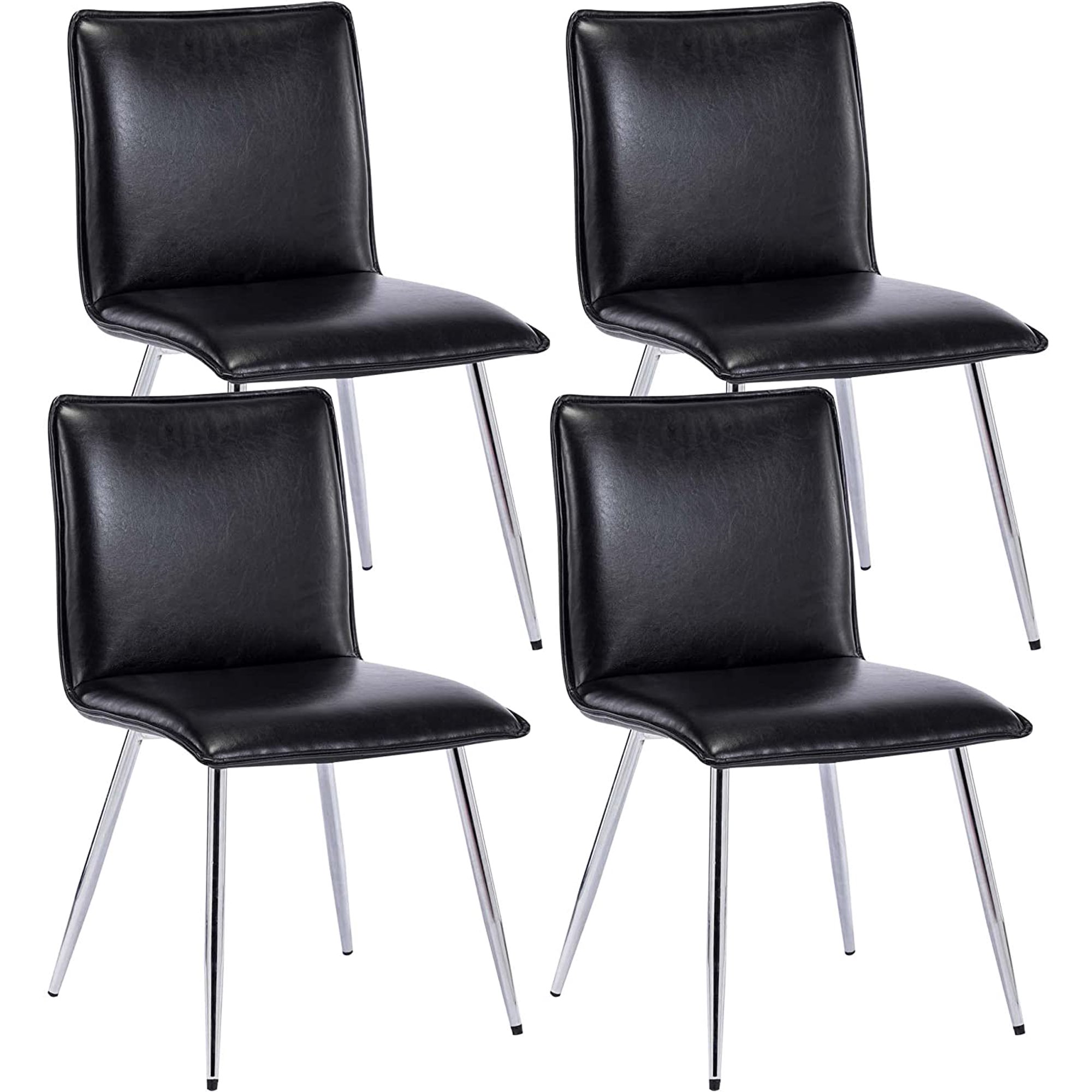 Leather Dining Chairs Set of 4,Modern PU Leather Kitchen Dining Room Chairs,Upholstered Dining Accent Side Chairs in Faux Leather Cushion Seat and Sturdy Metal Legs,Black