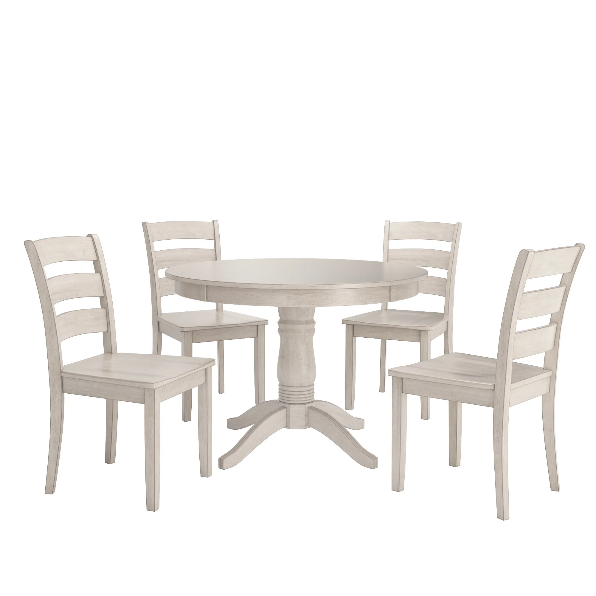 Lexington 5-Piece Wood Dining Round Table and 4 Ladder Back Chairs, Antique White