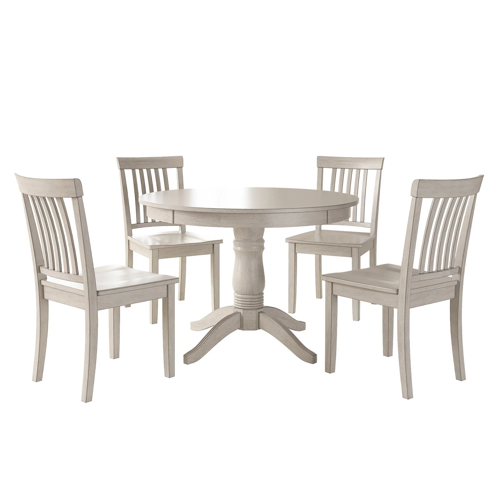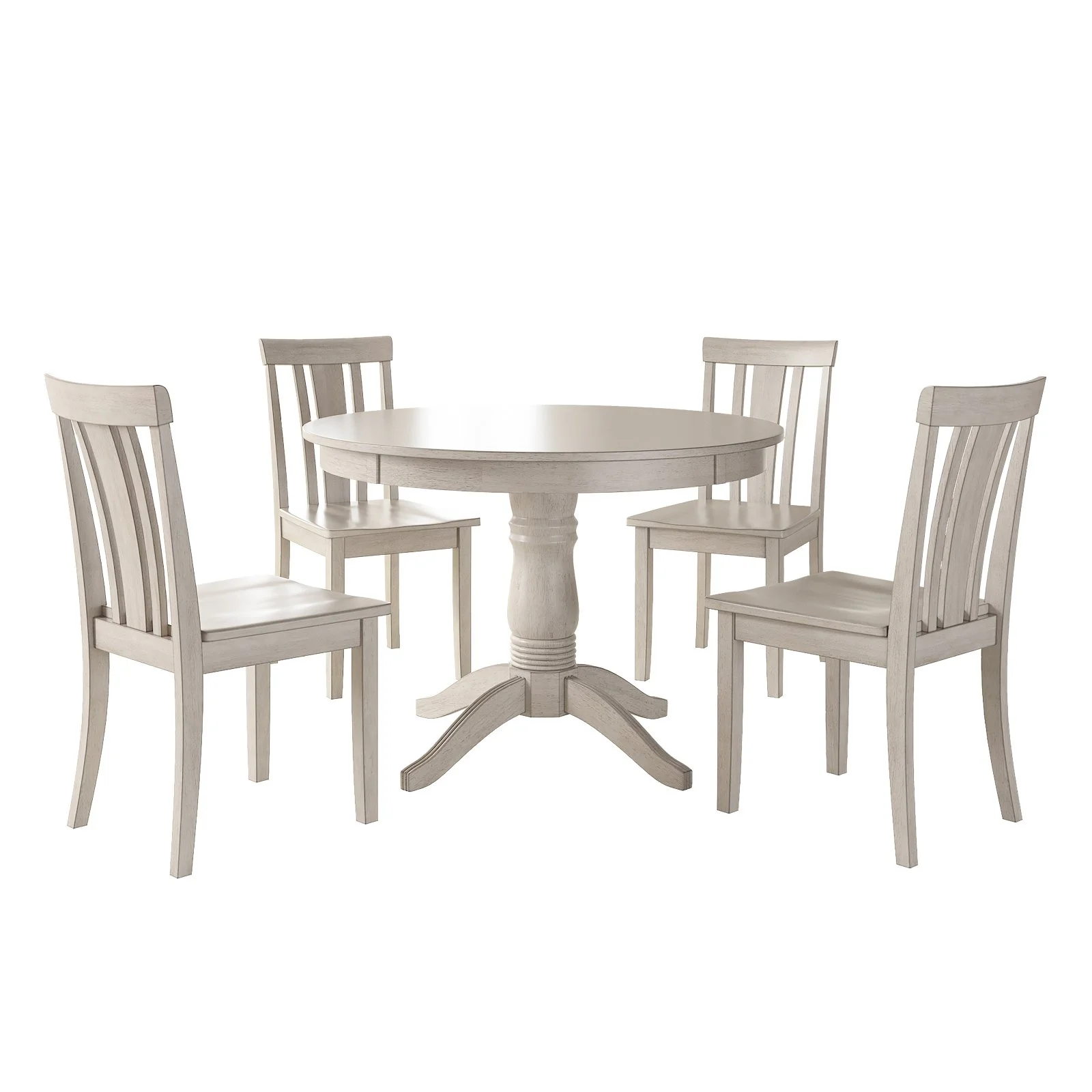 Lexington 5-Piece Wood Dining Set, Round Table and 4 Slat Back Chairs, White