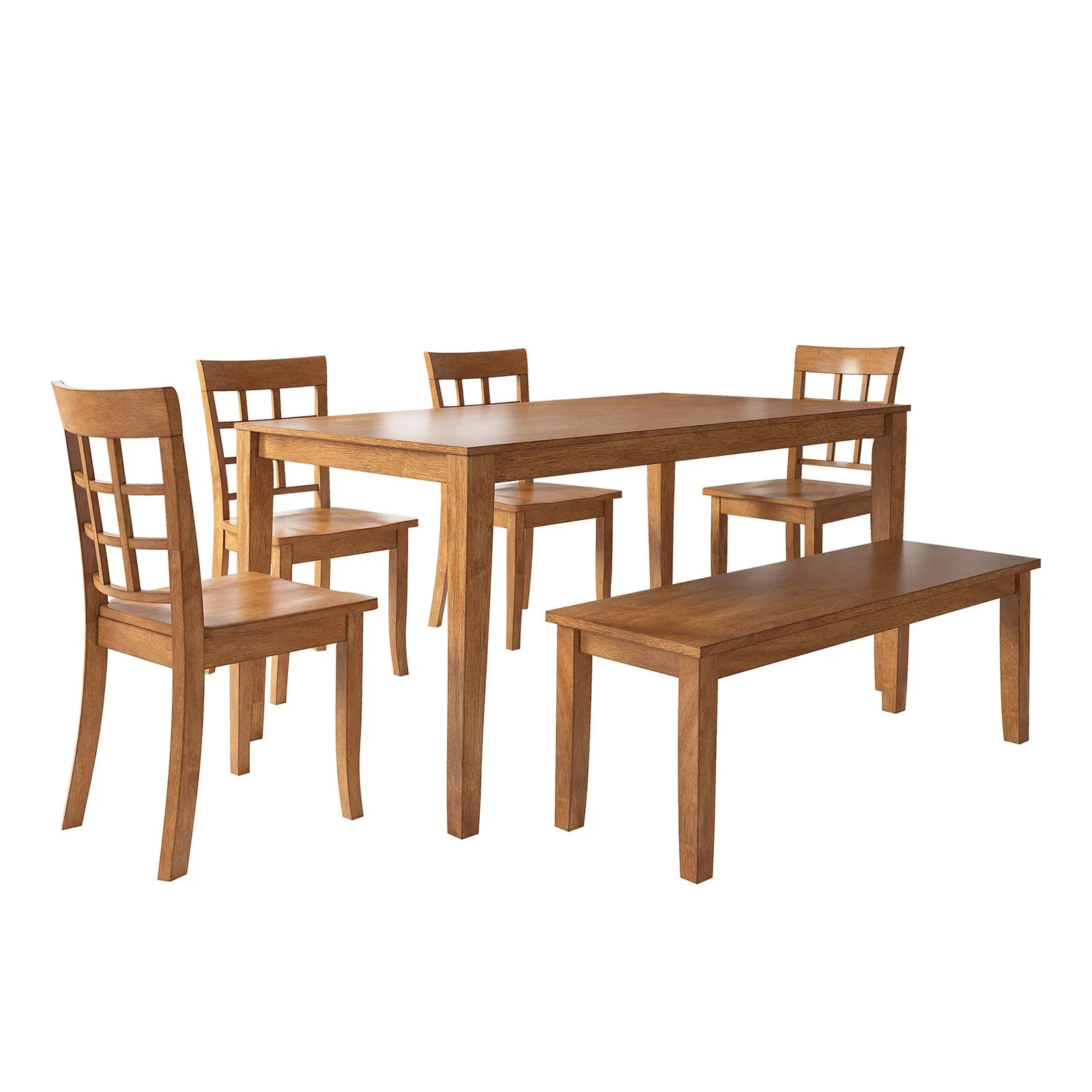 Lexington Large Dining Set with Bench and 4 Window Back Chairs, Oak