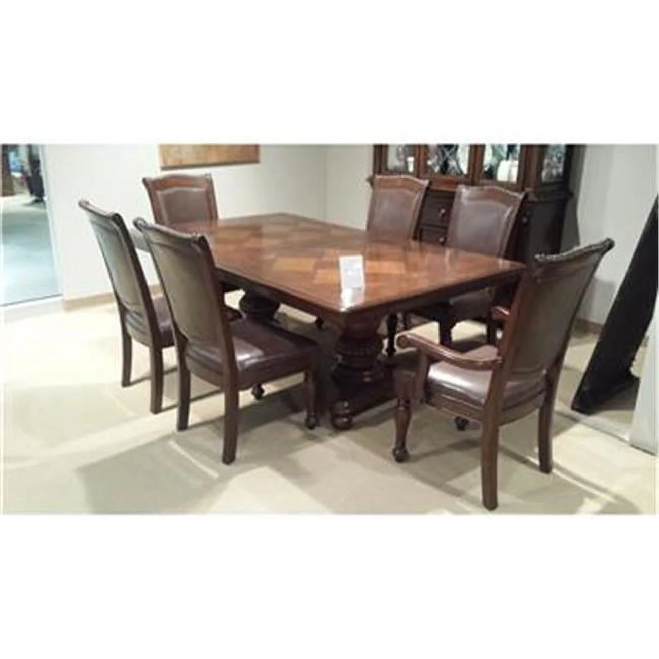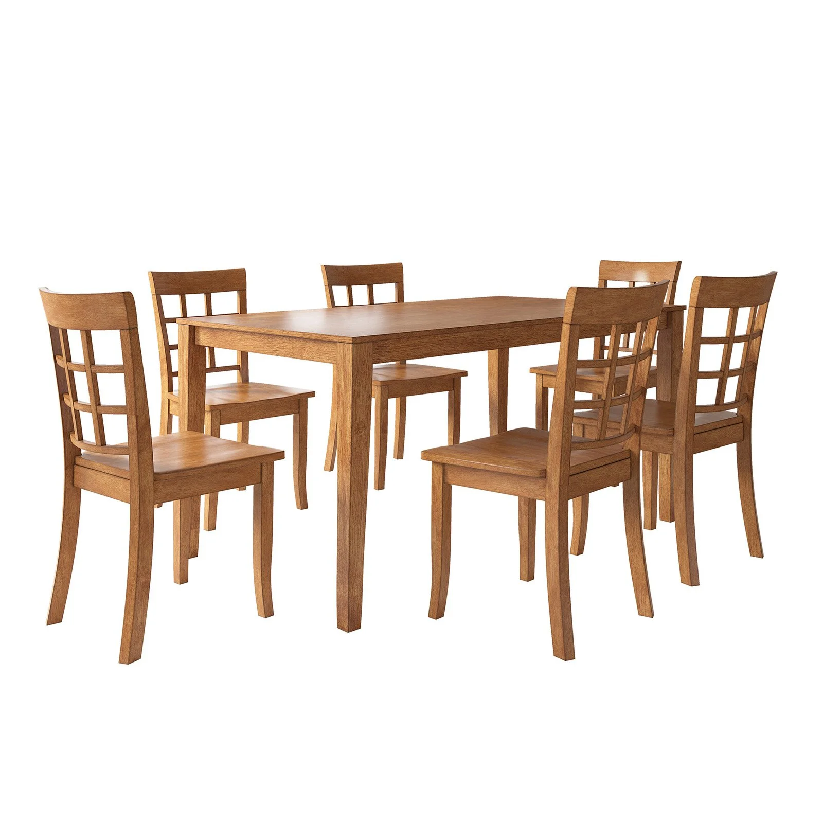 Lexington Large Wood Dining Set with 6 Window Back Chairs, Oak