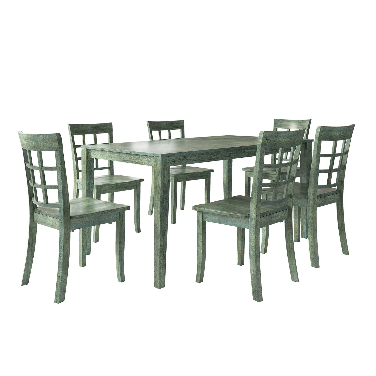 Lexington Large Wood Dining Set with 6 Window Back Chairs, Dark Sea Green