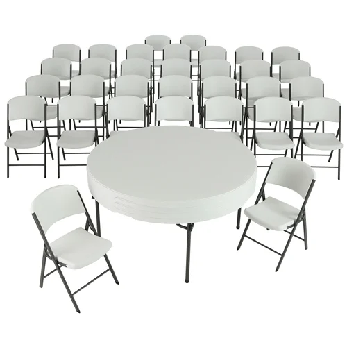 Lifetime 4 60 inch Round Folding Tables with 32 Folding Chairs - Almond