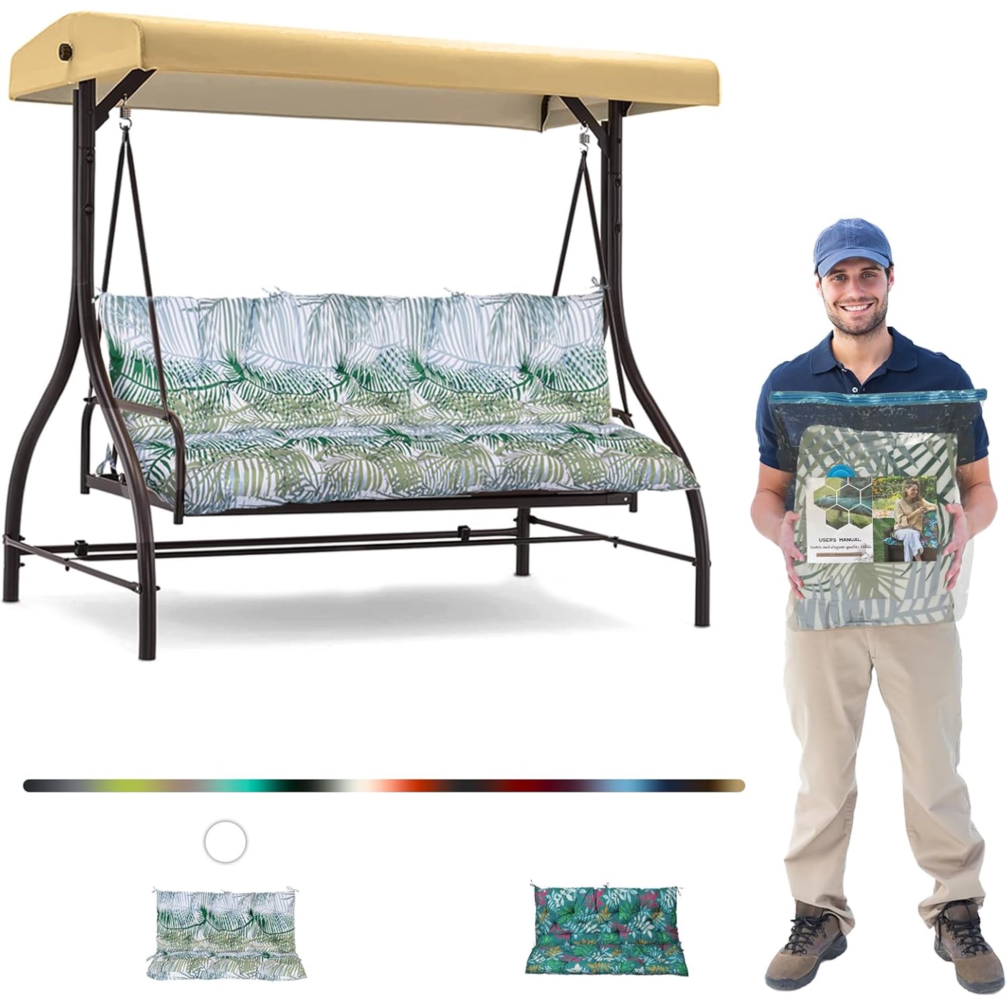 Replacement cushions for swing, Waterproof outdoor glider cushions, Thicken 4" Porch Swing Cushions, for Indoor/Outdoor Bench Cushion for Patio Chair Swing Garden Furniture (40 * 60 in, B-Hawaii)