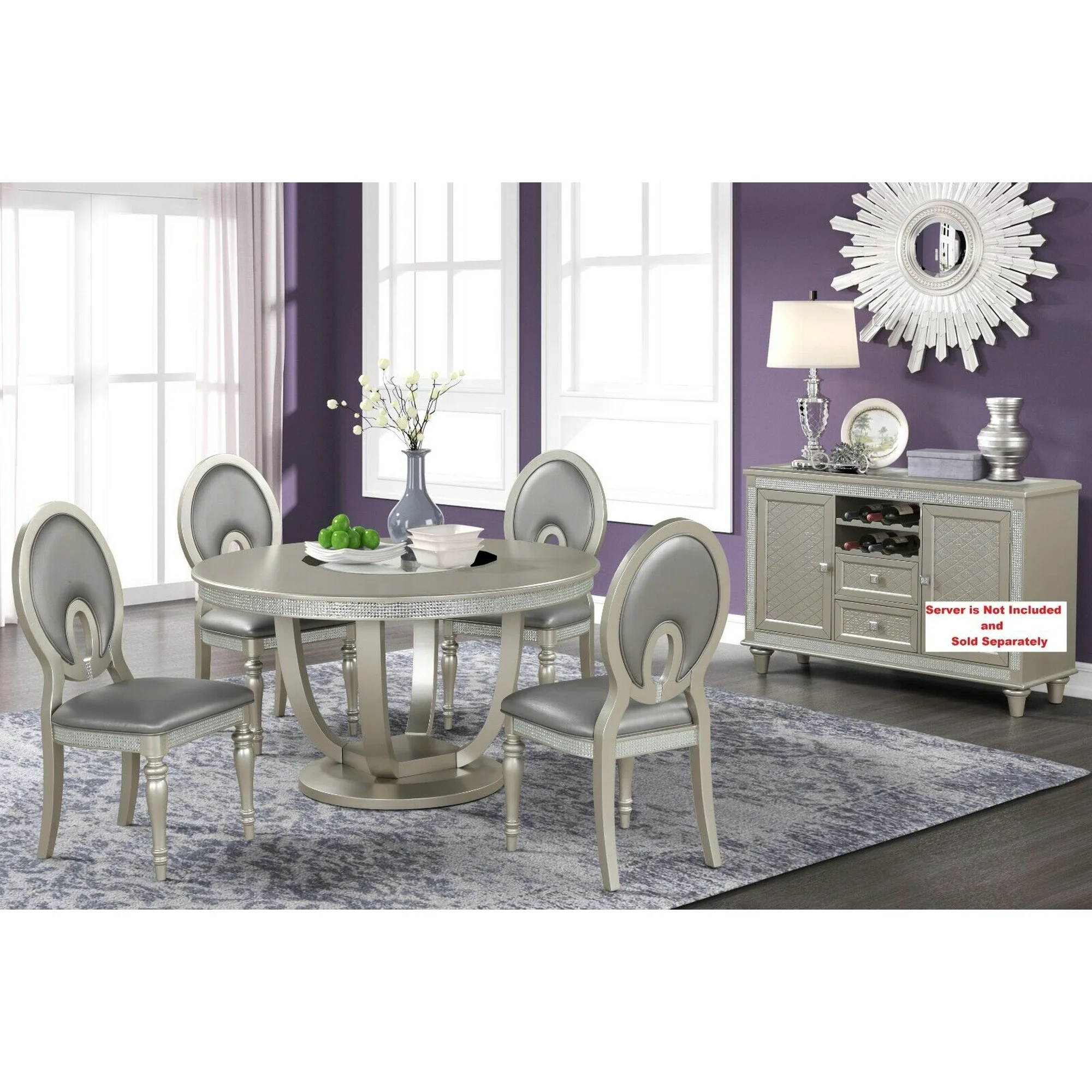 Luxury Formal Glam 5pc Dining Set Chair Round Table Silver Champagne Finish