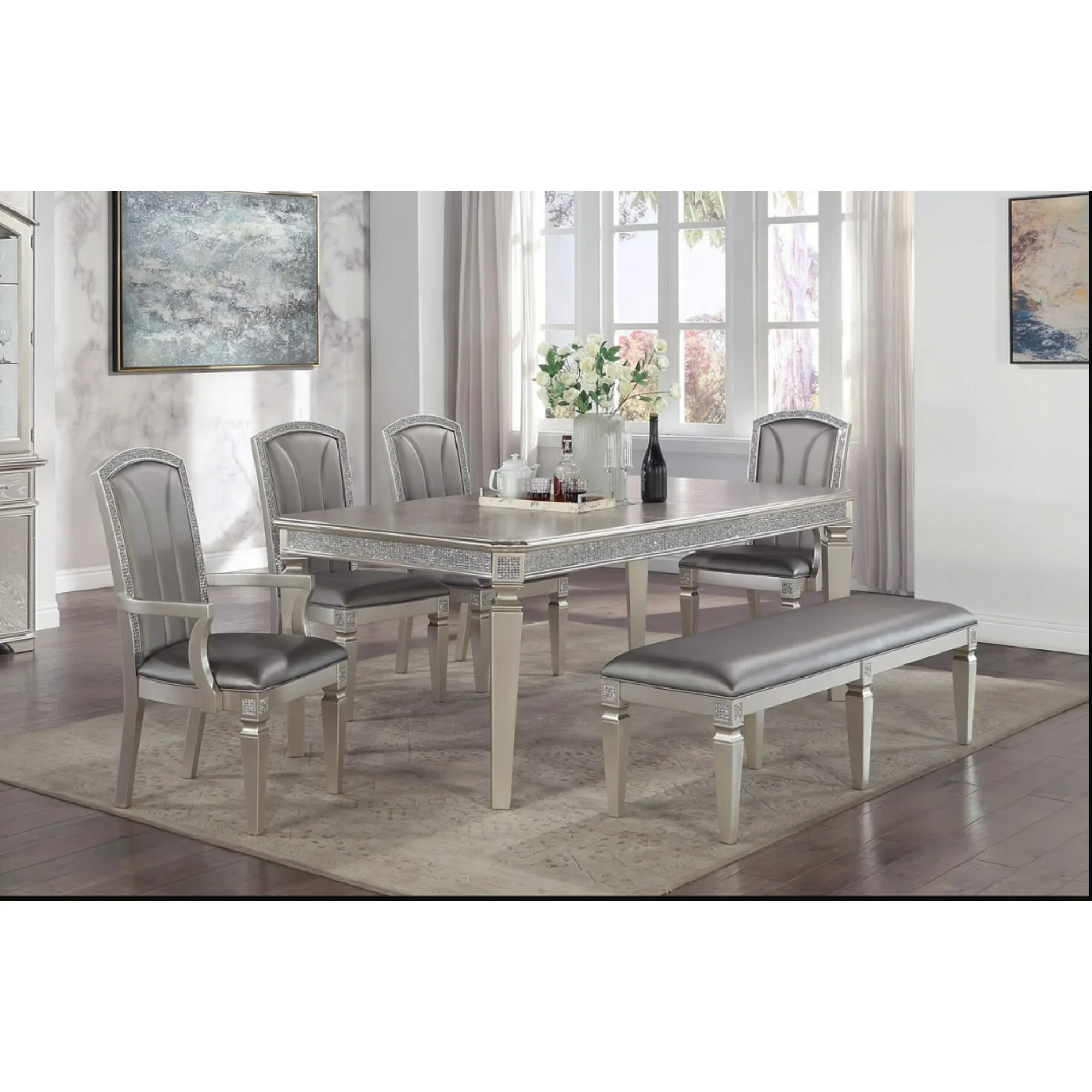 Luxury Formal Glam 6pc Dining Set Rectangular Table Chairs Furniture Silver Champagne Finish