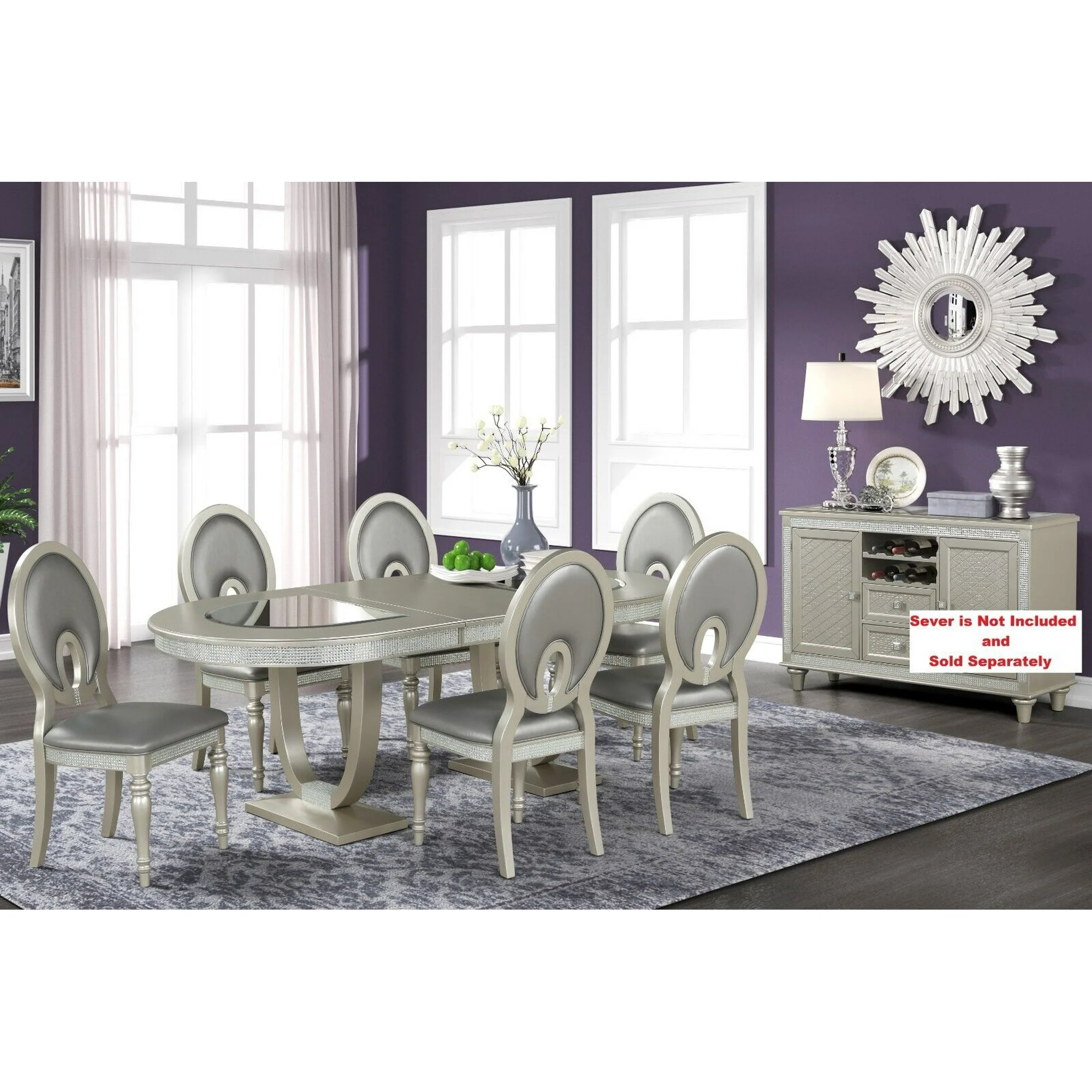 Luxury Formal Glam 7pc Dining Set Oval Table Chair Silver Champagne Finish