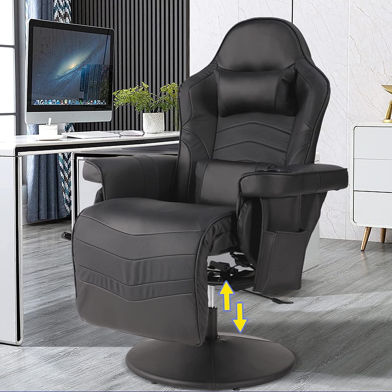 LVUYOYO Massage Video Gaming Recliner Chair Ergonomic Backrest & Seat Height Adjustment Swivel Recliner PU Leather High Back Computer Office Chair with Cupholder, Headrest, Lumbar Support, Footrest