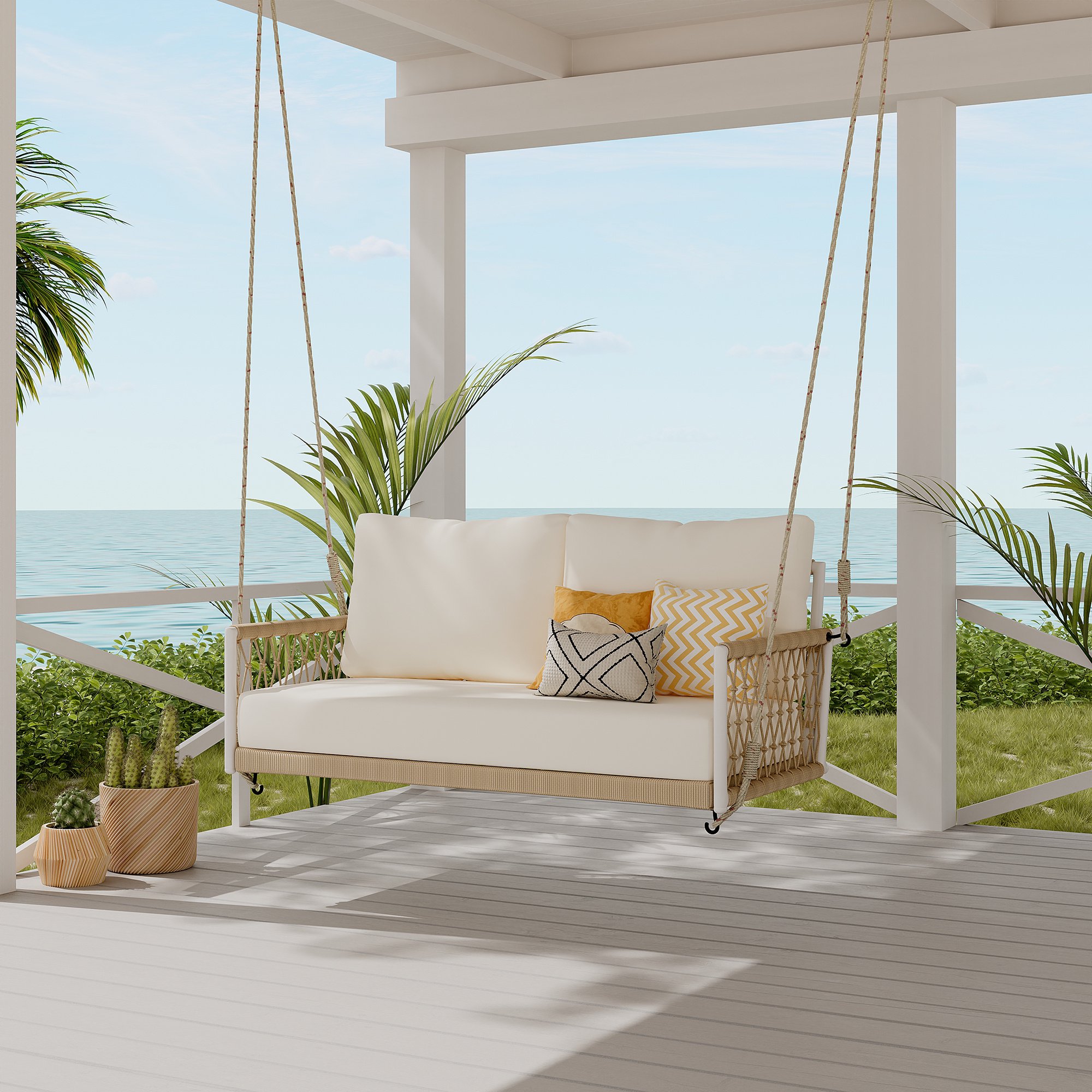 Porch Swing 2 Person Hanging Bench Outdoor Swing Bench with Cushions for Patio, Yard, Garden Hold Up to 650 lbs