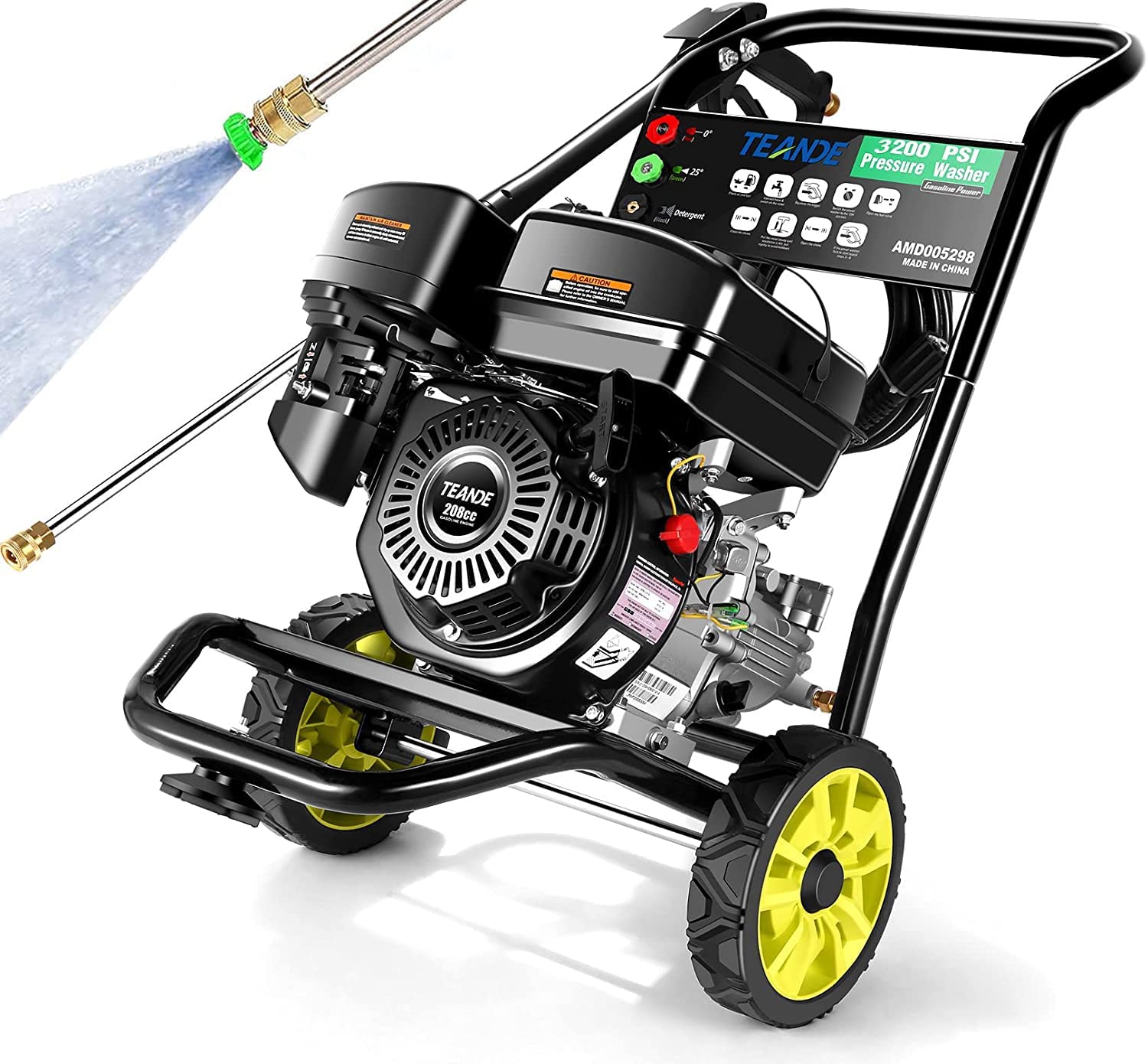 TEANDE Gas Pressure Washer Powered, 2.6 GPM 209cc 7.0 HP Power Washer with 3 Quick-Connect Nozzles, 25 Hose for Cars, Driveway, Patio, Siding, Fence Cleaning