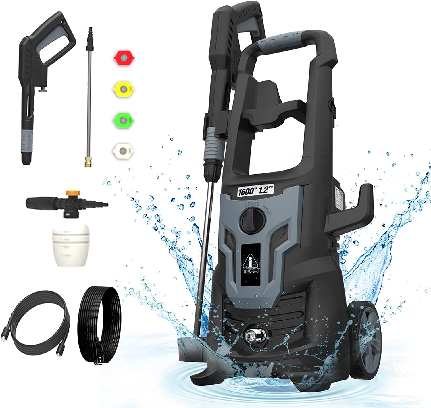 A-iTech 1600 PSI 1.2 GPM Electric Pressure Power Wash Machine with Detergent Tank and Adjustable Nozzles for Home Use Cars/Garden/Patios/Driveways Cleaning (AT30-51601)