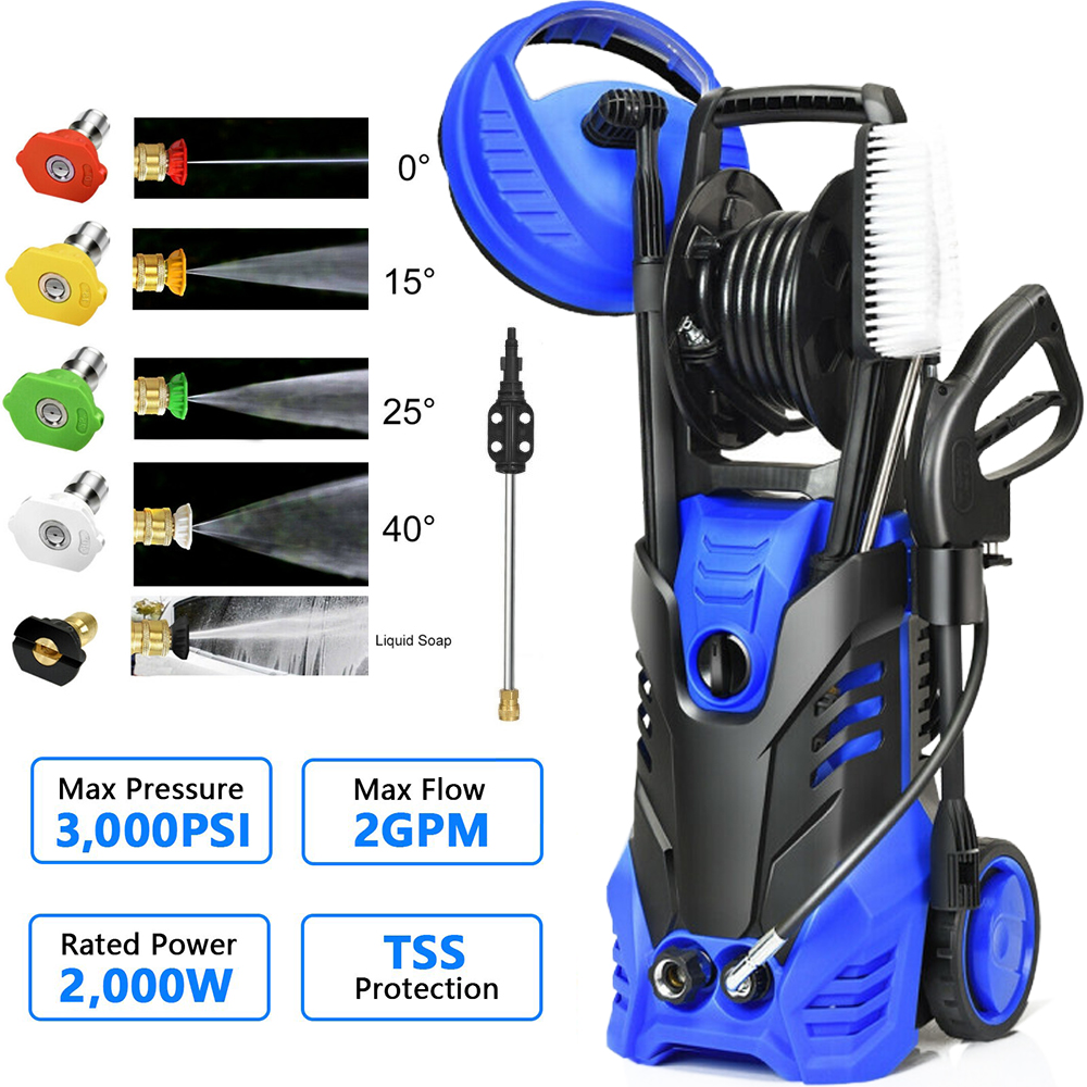 3000PSI Electric High Pressure Washer Machine 2 GPM 2200W w/ Deck Patio Cleaner Blue