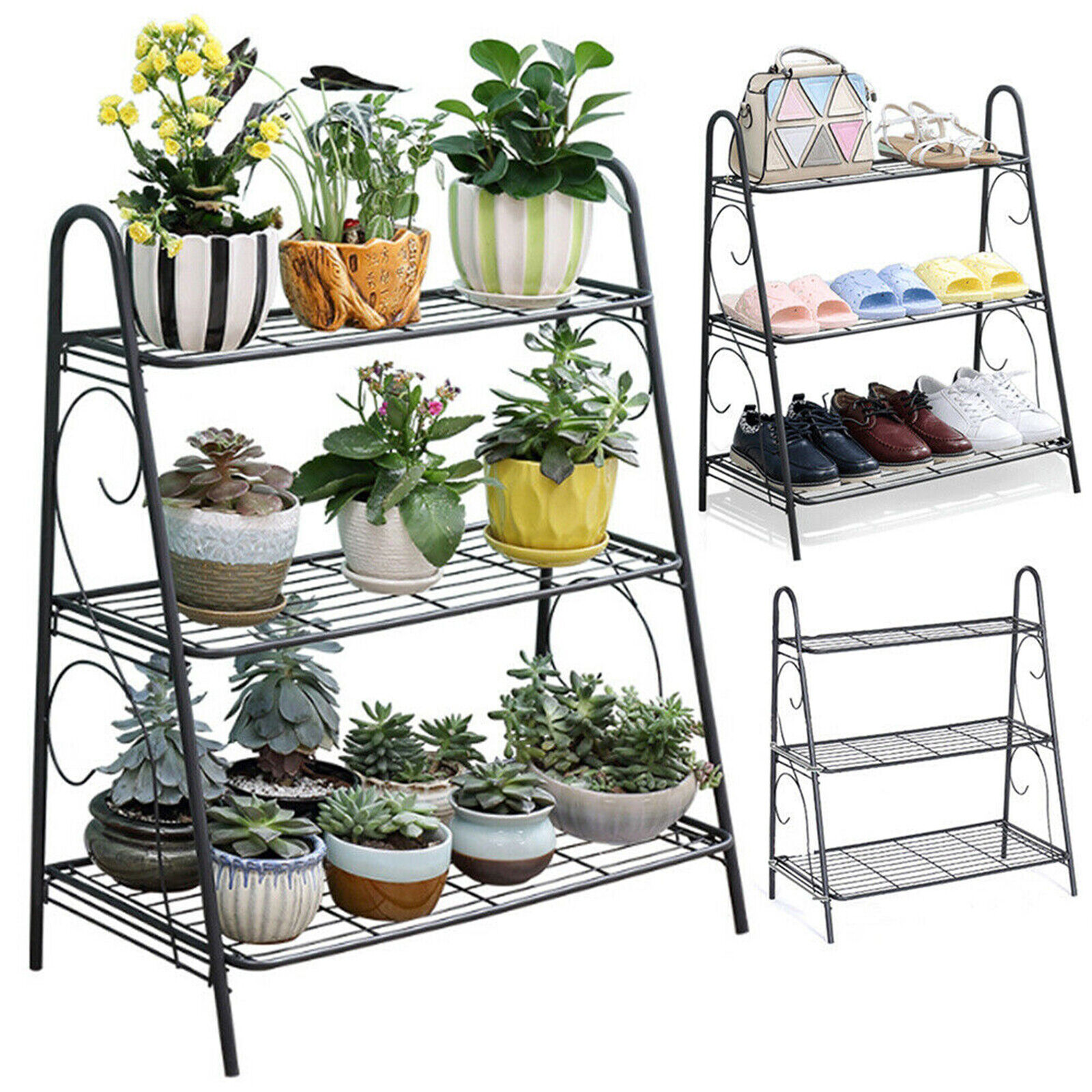 3 Tier Metal Plant Stand Outdoor Garden Flower Pot Shelf Step Display Rack for Indoor Outdoor Patio 24.8x12x28in