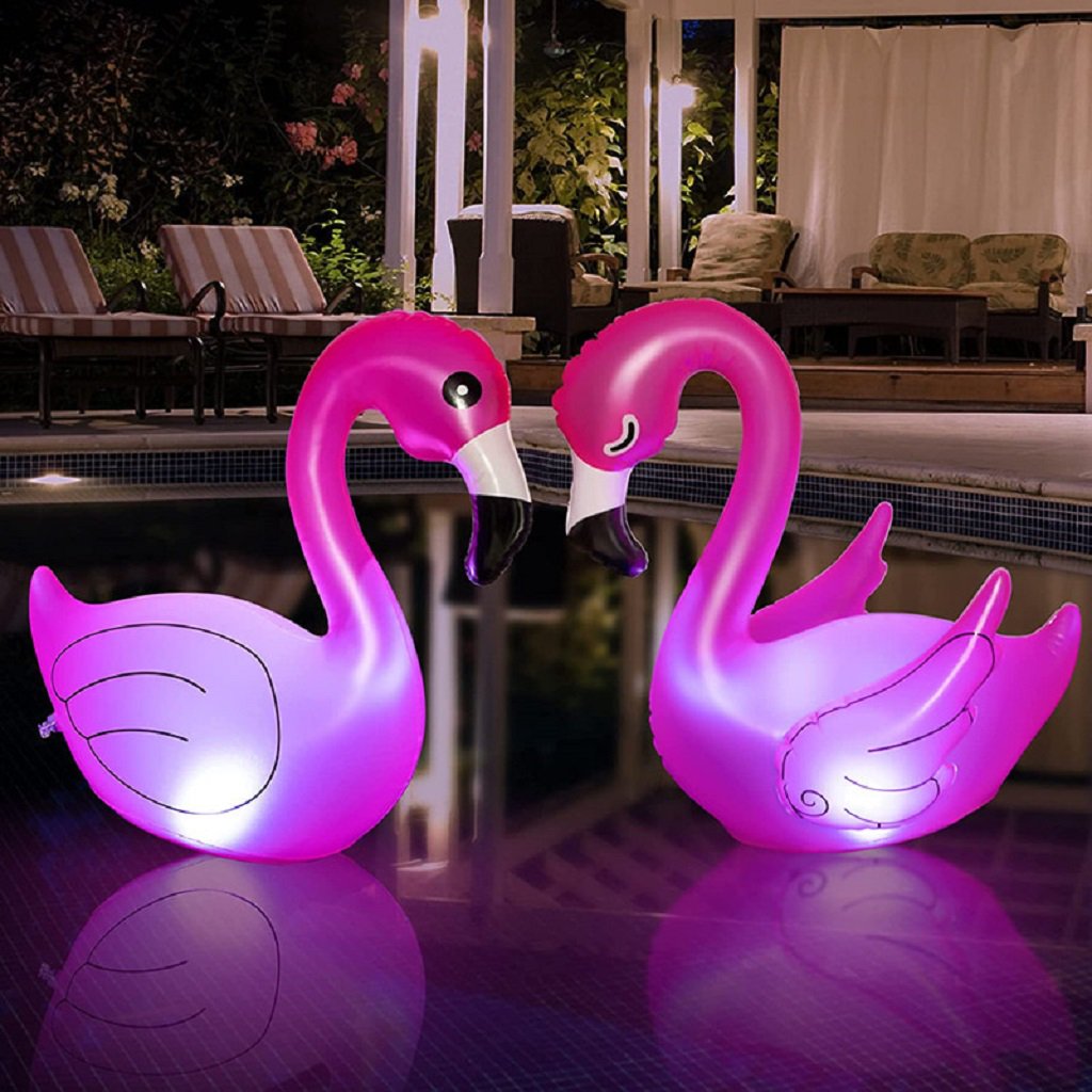 AIPINQI 2PCS Floating Pool Lights,Solar Flamingo Floating Pool Lights Waterproof,Glow in the Dark Solar Powered LED Lights,Inflatable Floating Lights for Pool Party Wedding Spa Patio Decorations