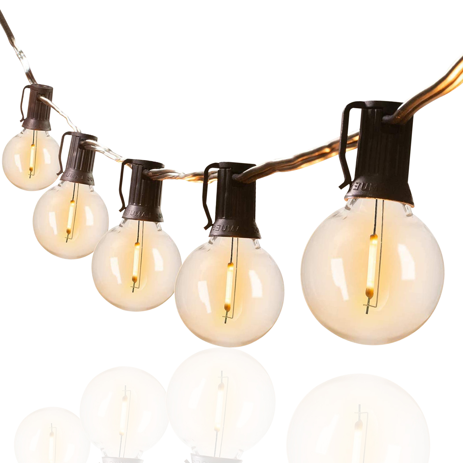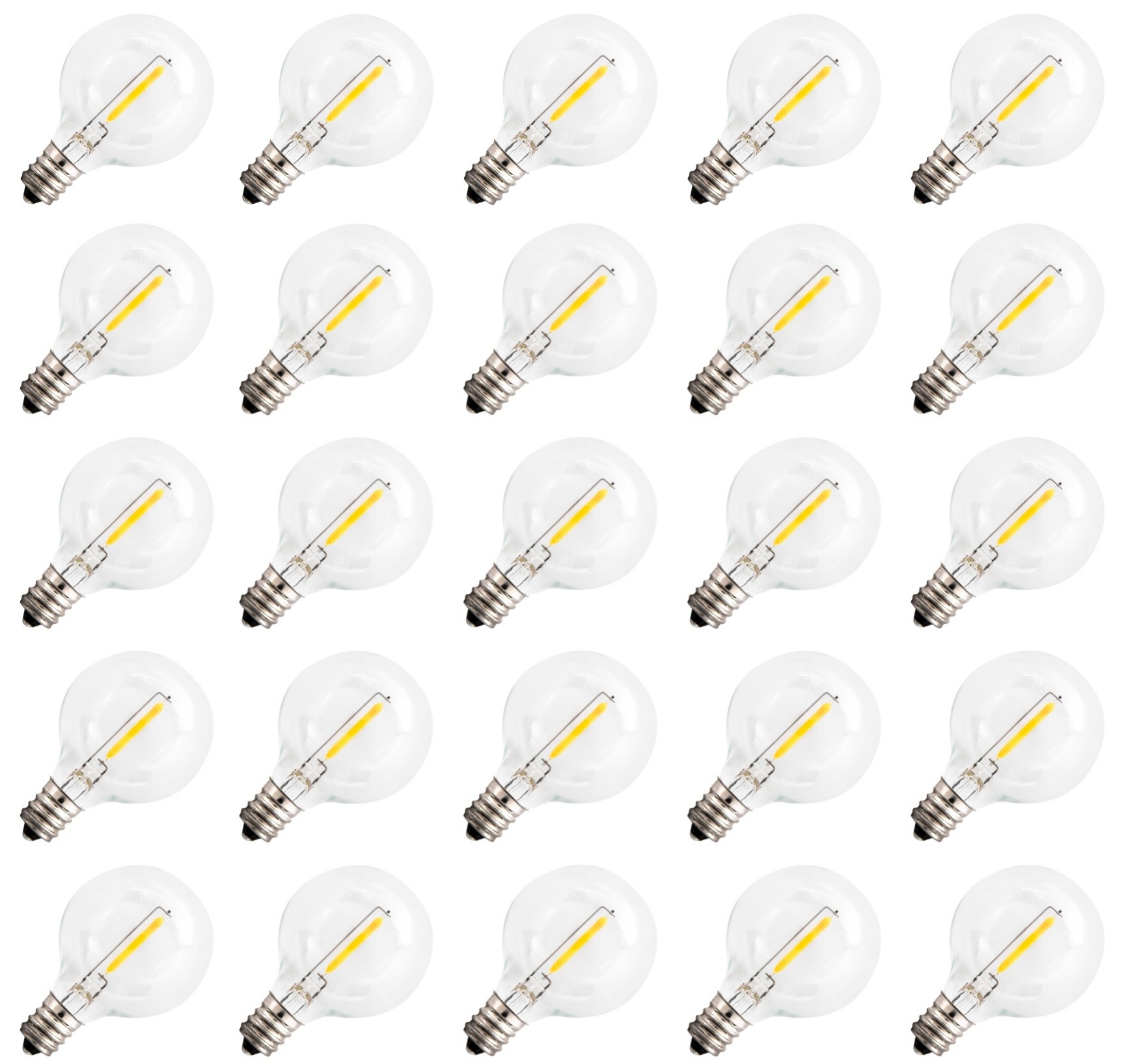 25-Pack G40 LED String Light Replacement Bulbs,E12/C7 Candelabra Screw Base Bulb,1W Clear Glass Globe Bulb, 2700K Soft White Dcor Lighting for Christmas, Hanging Lights, Patio, Backyard