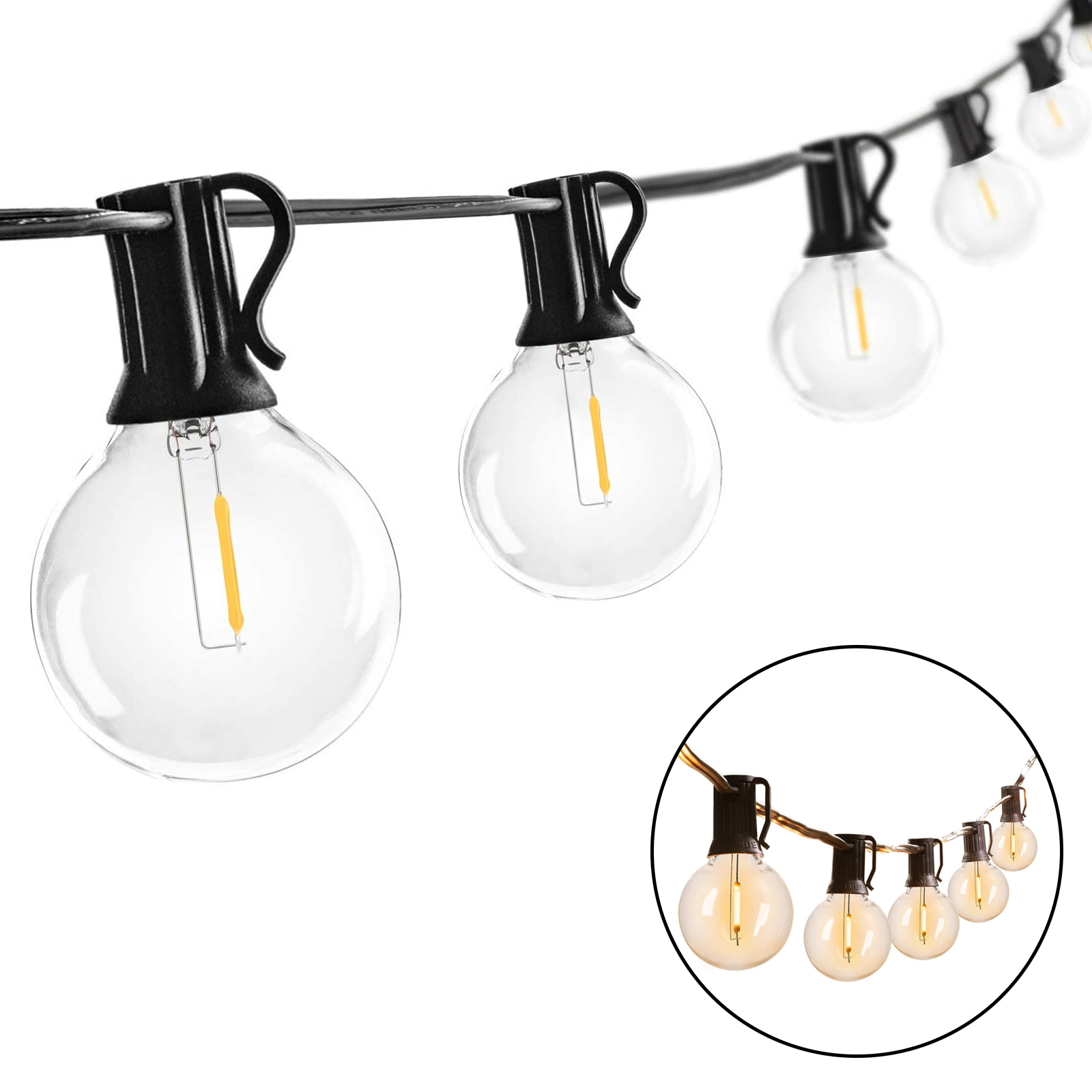 Outdoor String Light 50Feet G40 Globe Patio Lights with 52 Edison Glass Bulbs(2 Spare), Waterproof Connectable Hanging Light for Backyard Porch Balcony Party Decor, E12 Socket Base, Black