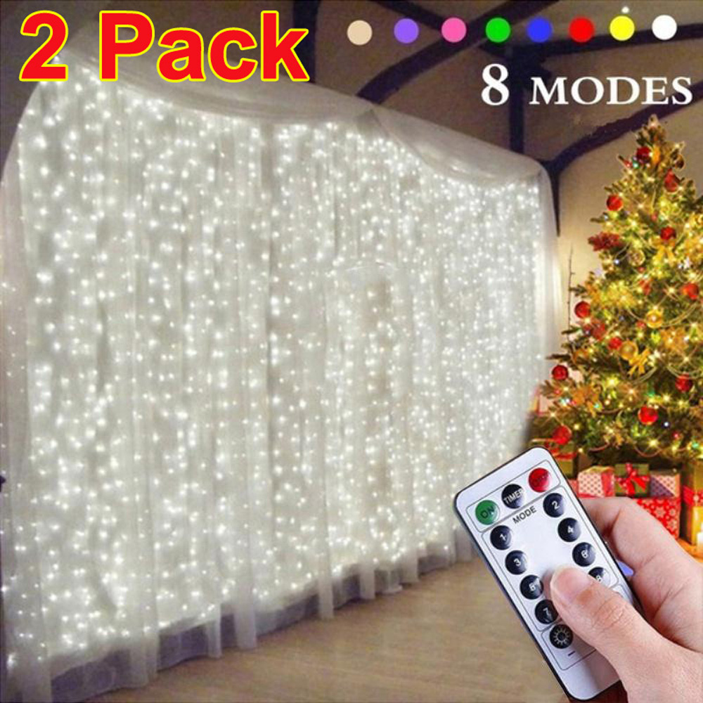 300 LED Curtain Lights,Fairy Lights 8 Lighting Modes,2-Pack Each 9.9x9.9Ft Fairy String Lights Patio Hanging Wall Lights with Remote Control Window Icicle Xmas String Lights for Decor