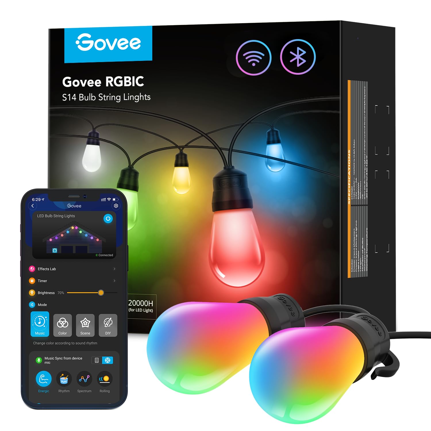 Govee Smart Outdoor String EC36Lights, RGBIC Warm White 48ft LED Bulbs for Valentine's Day, WiFi Patio Lights Work with Alexa, APP Control, IP65 Waterproof, Dimmable for Balcony, Backyard