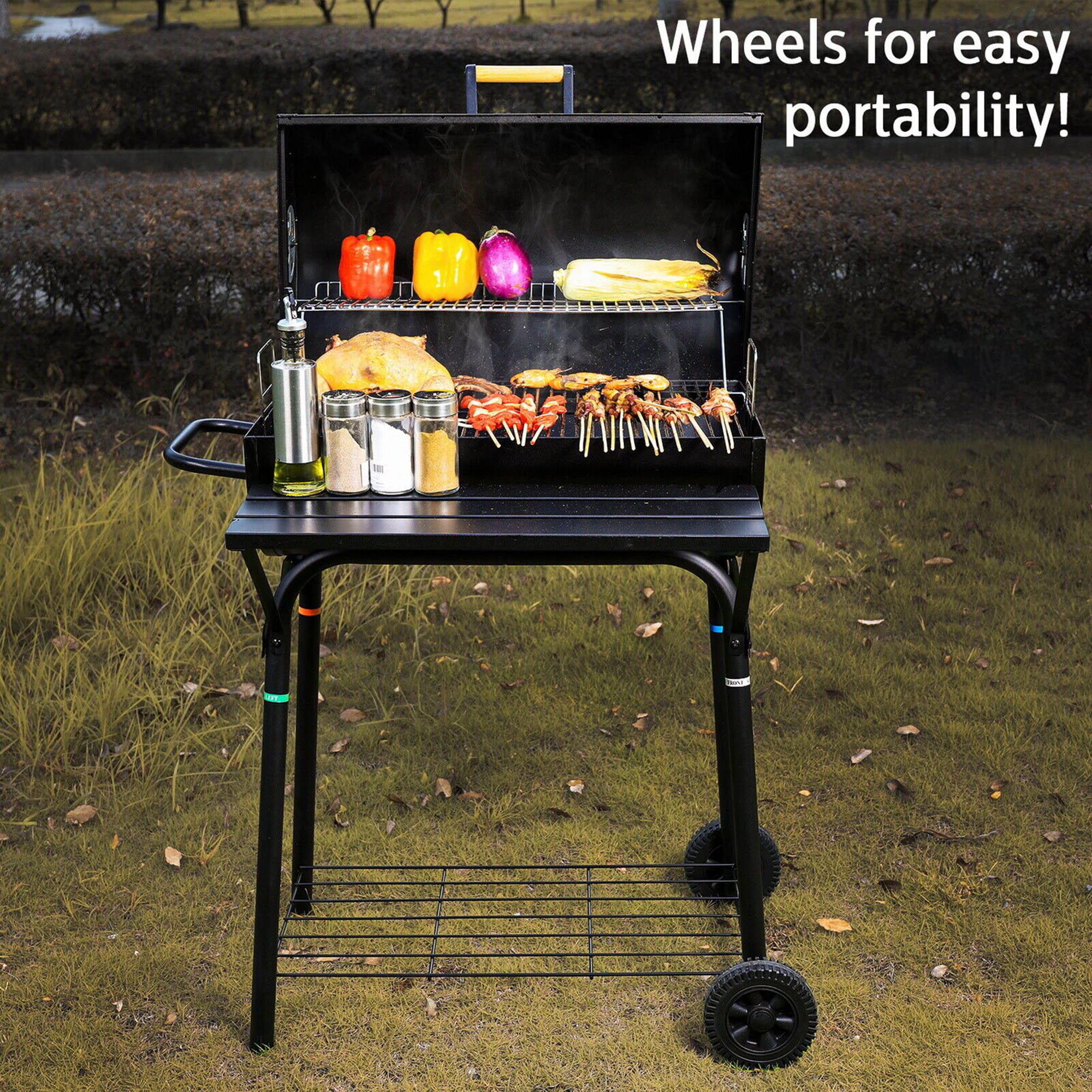 moobody Charcoal BBQ Grill Smoker with Bottom Shelf Steel Barbecue Grill Cooking for Camping, Patio, Backyard, Picnic, Kitchen Black 29.5 x 18.9 x 47.2 Inches (W x D x H)