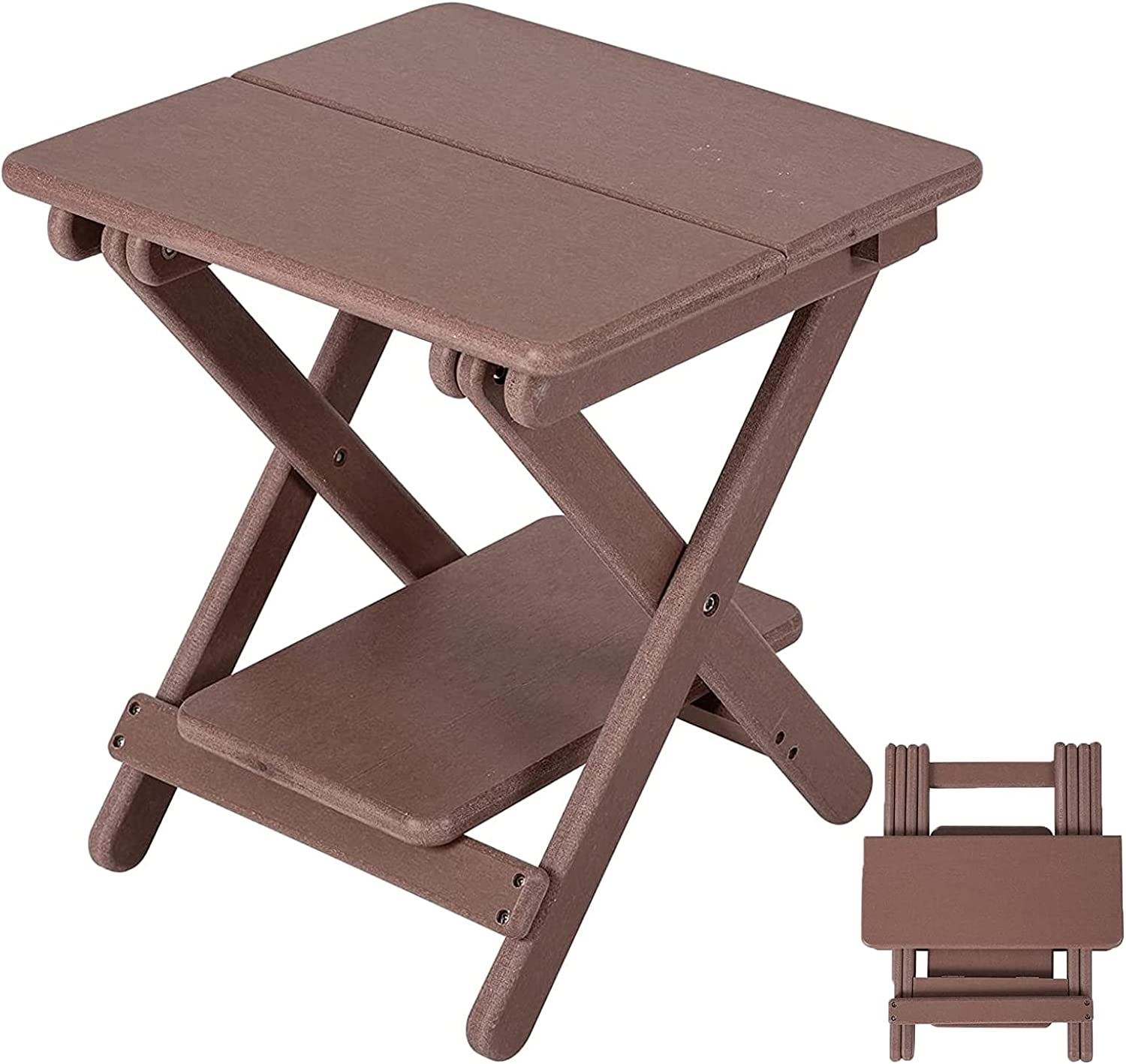 NALONE Adirondack Folding Table 15.7" Outdoor Side Table HDPE Plastic Double End Table Portable for Camping, Patio, Picnic, Porch, Deck (Brown)