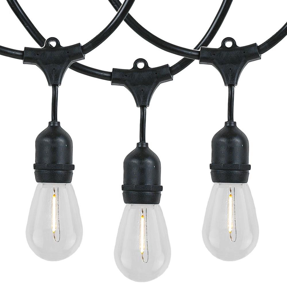 Novelty Lights 48' Warm White LED Filament S14 Edison Outdoor String Lights, Suspended, Commercial Grade, Backyard Garden Gazebo, Cafe Market Patio Lights, Black Wire, 24 Sockets