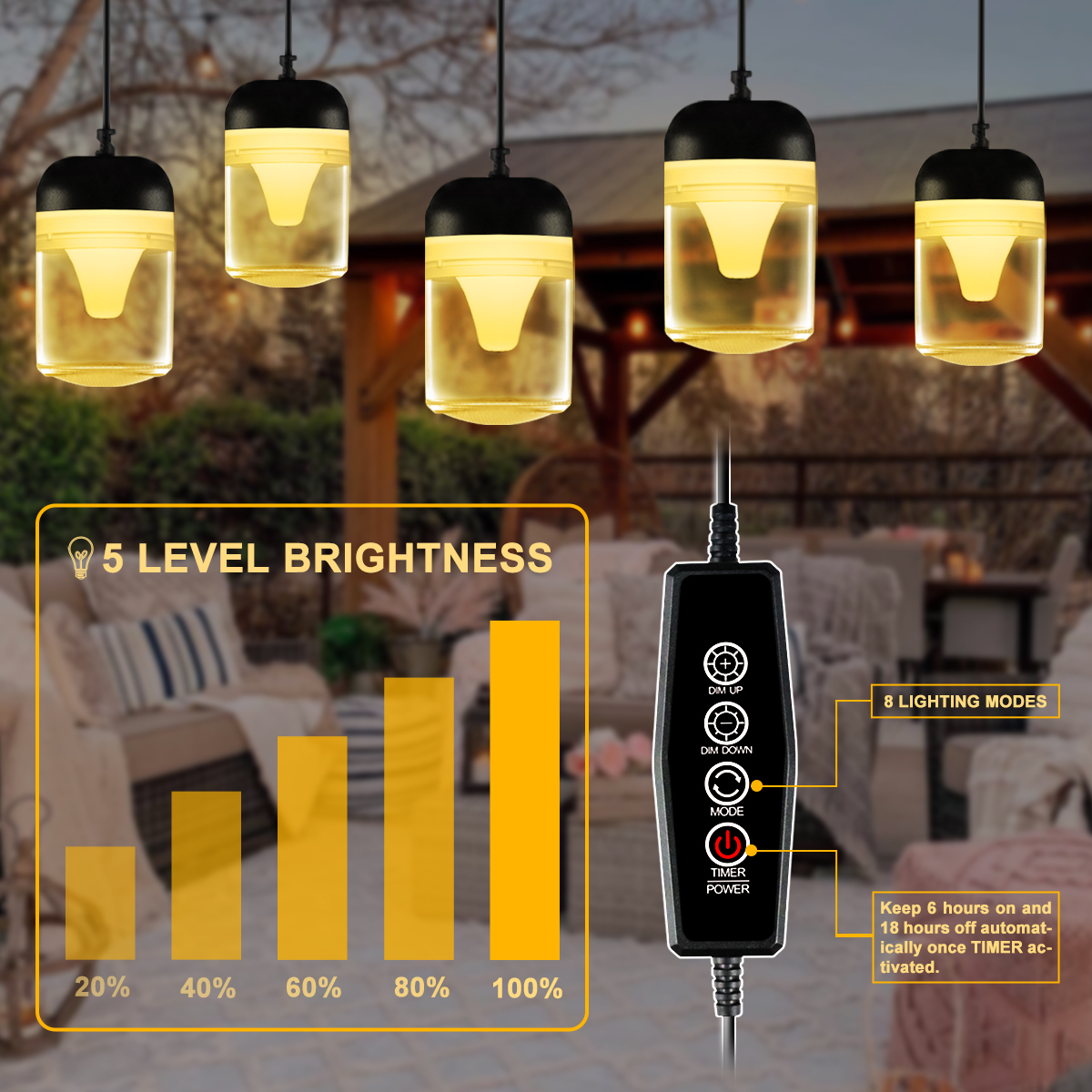 ENERGETIC Solar Outdoor String Lights, 27ft Warm White Patio Lights with 13 LED Bulbs(1 Spare), Shatterproof, Waterproof, UL Listed