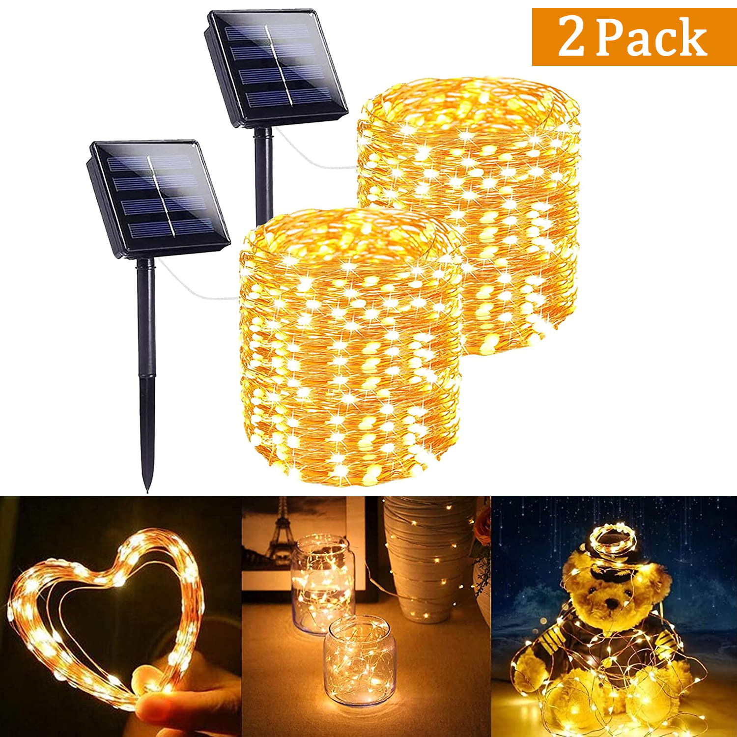 2-Pack 72FT 200 LED Solar String Lights Outdoor, Waterproof Solar Fairy Lights with 8 Lighting Modes, Solar Outdoor Lights for Tree Christmas Wedding Party Decorations Garden Patio (Warm White)