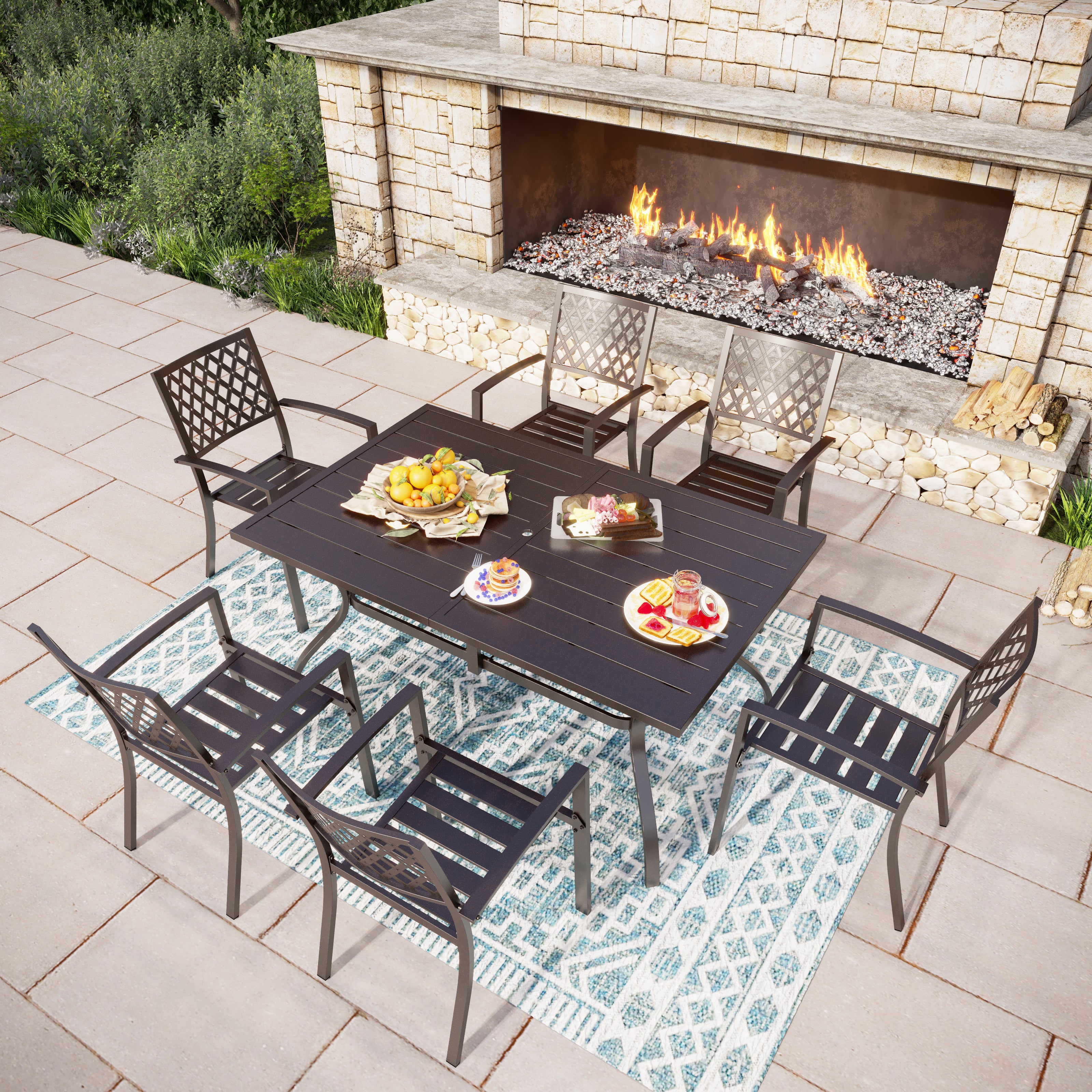 Summit Living 7-Piece Outdoor Dining Set, Patio Metal Dining Set with Slat Table Top,All Weather Furniture Sets with Umbrella Hole, Black