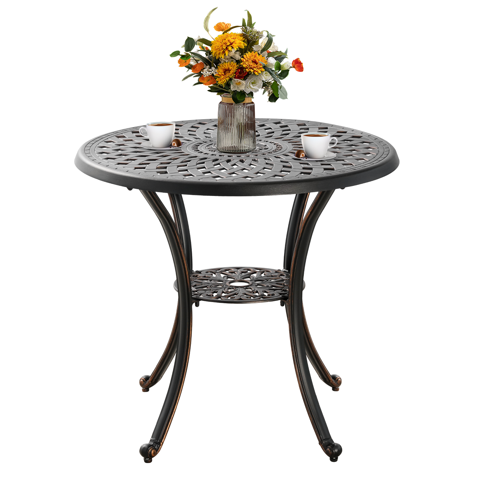 PATIO-IN 31.5"Cast Aluminum Patio Bistro Table with 2.2" Umbrella Hole,Metal Outdoor Patio Dining Table,Round Coffee Bistro Table for Indoor,Garden,Porch,Bronze