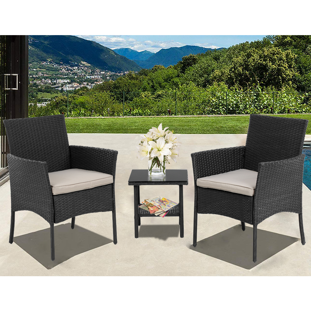 Patio Furniture Sets 3 Pieces Outdoor Bistro Set Rattan Wicker Conversation Sets with Beige Cushions