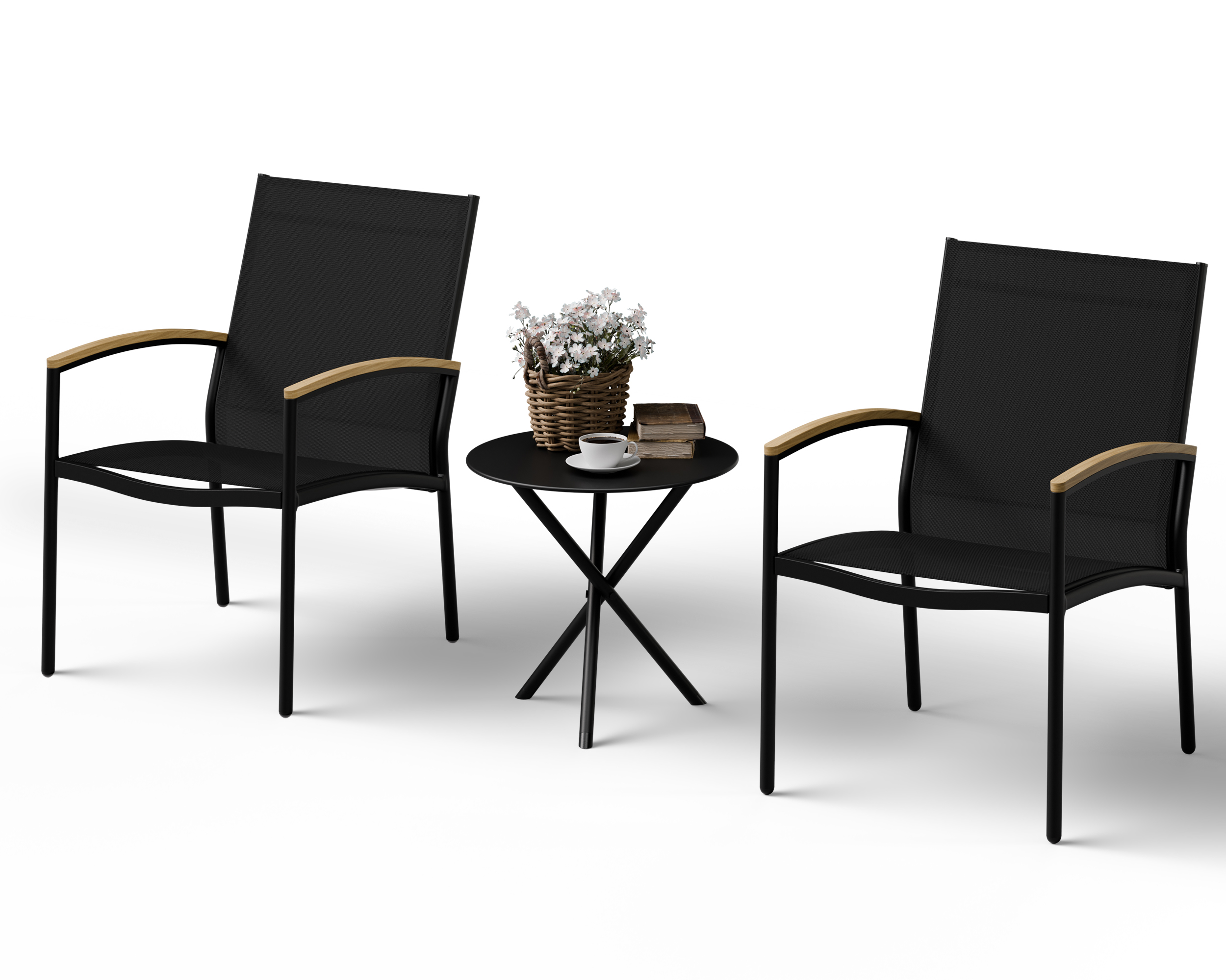 Walsunny 3 Piece Outdoor Patio Furniture Set Textilene Patio Bistro Set with Coffee Table for Balcony Porch and Apartment Black