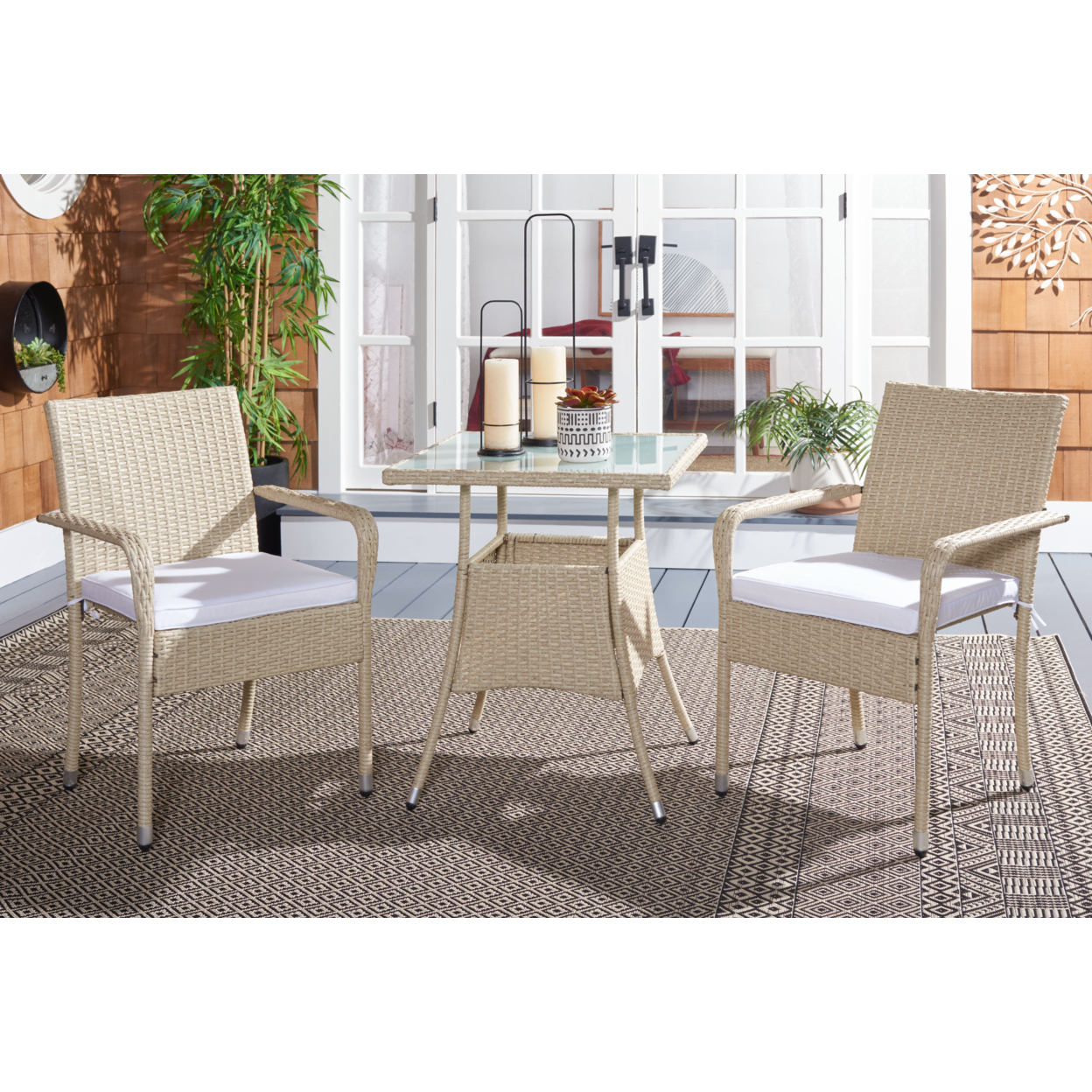 SAFAVIEH Laban Outdoor Patio 3 Piece Bistro Set, Beige/White