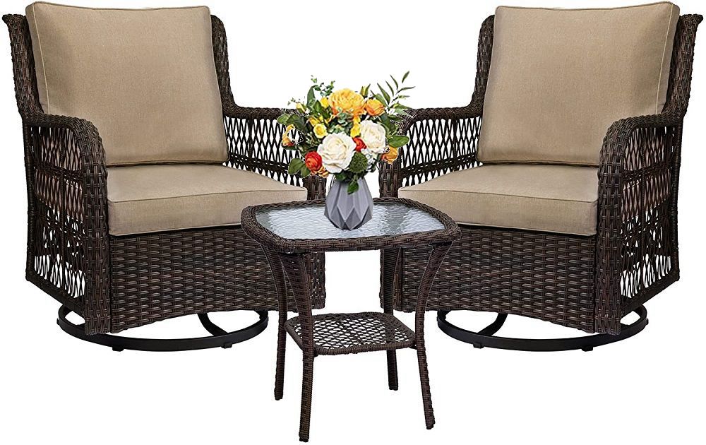 Soonbuy 3 Piece Patio Bistro Furniture Sets Clearance, Outdoor Wicker Swivel Rocker Patio Set, 360 Degree Swivel Rocking, Beige