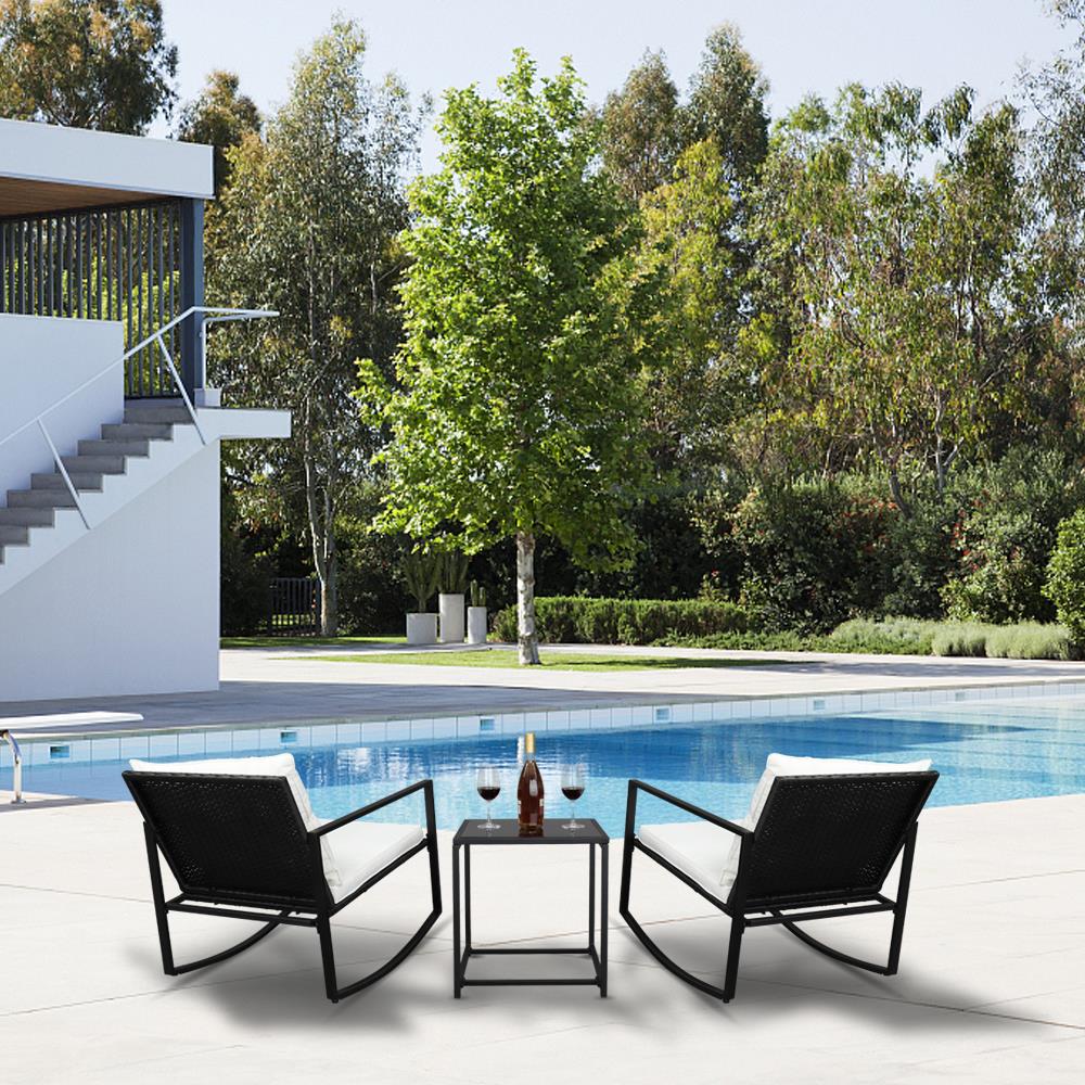 SalonMore 3pcs Rocking Bistro Set Wicker Patio with Glass Coffee Table