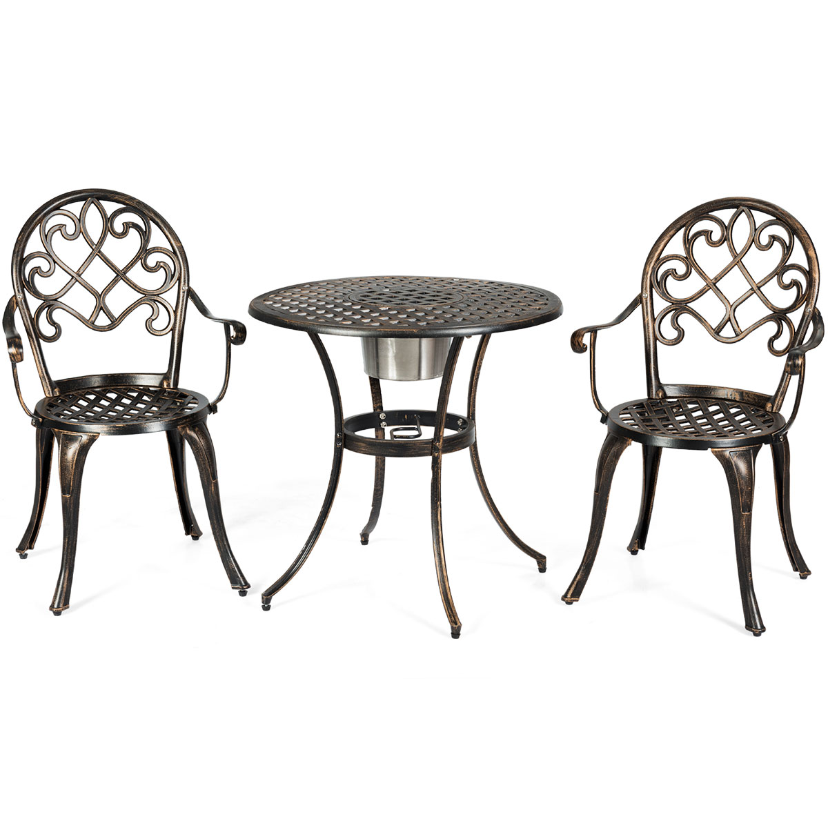 Topbuy 3 PCS Bistro Table Set Aluminum Patio Furniture w/ Ice Bucket Antique Bronze