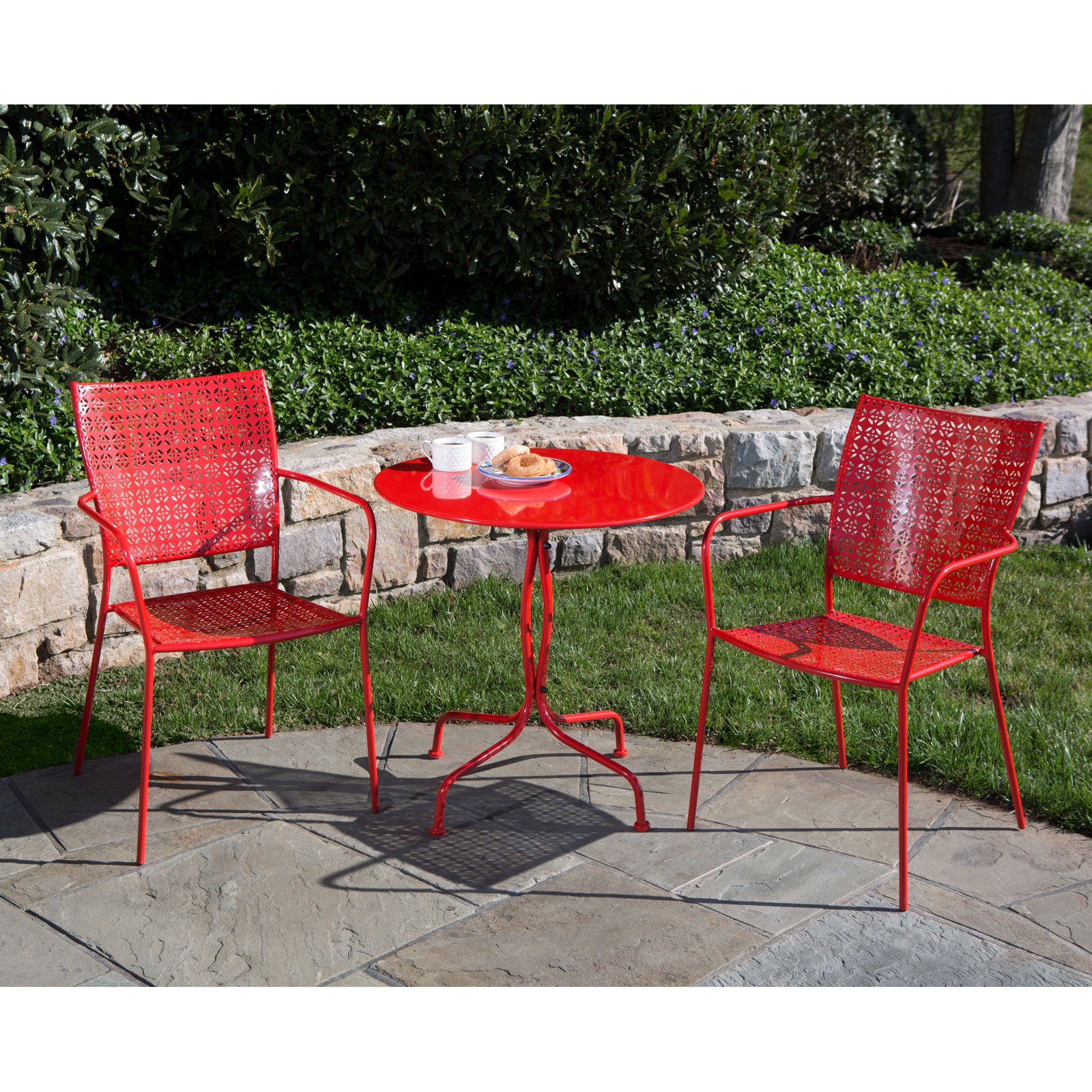 Alfresco Home Martini 3 Piece Patio Bistro Set in Cherry Pie Red
