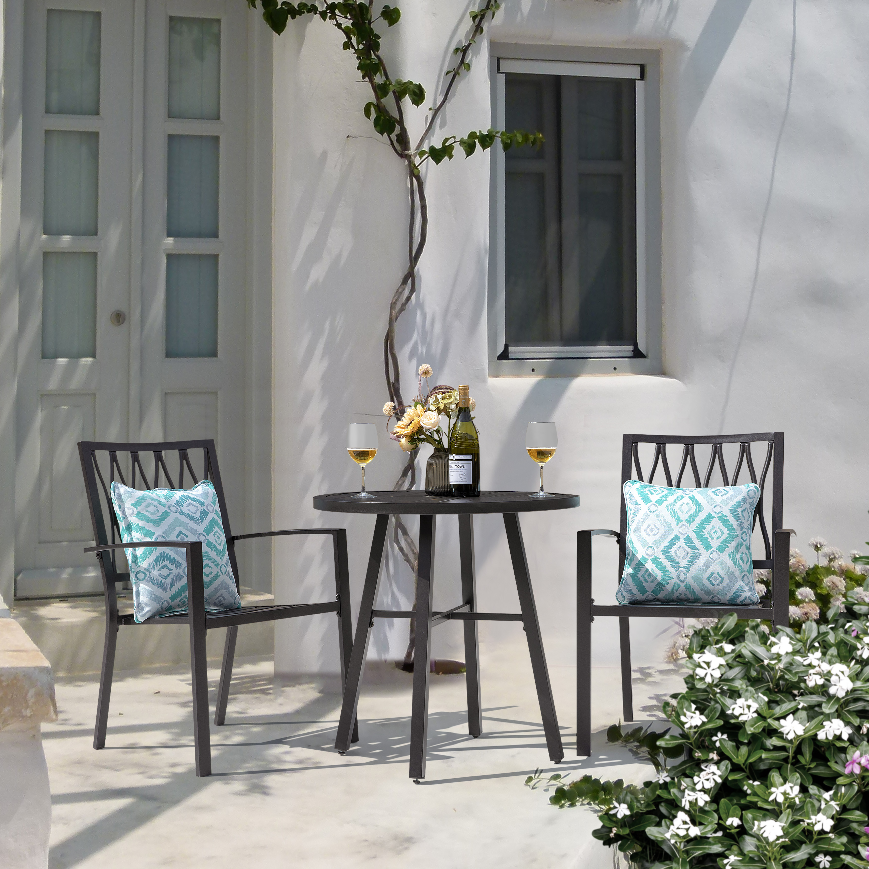 Nuu Garden 3 Piece Patio Bistro Furniture Set, Powder-coated Finish and Steel Frame, Outdoor and Indoor Space, Bistro, Deck, Garden, Backyard, Balcony, Black with Gold Points
