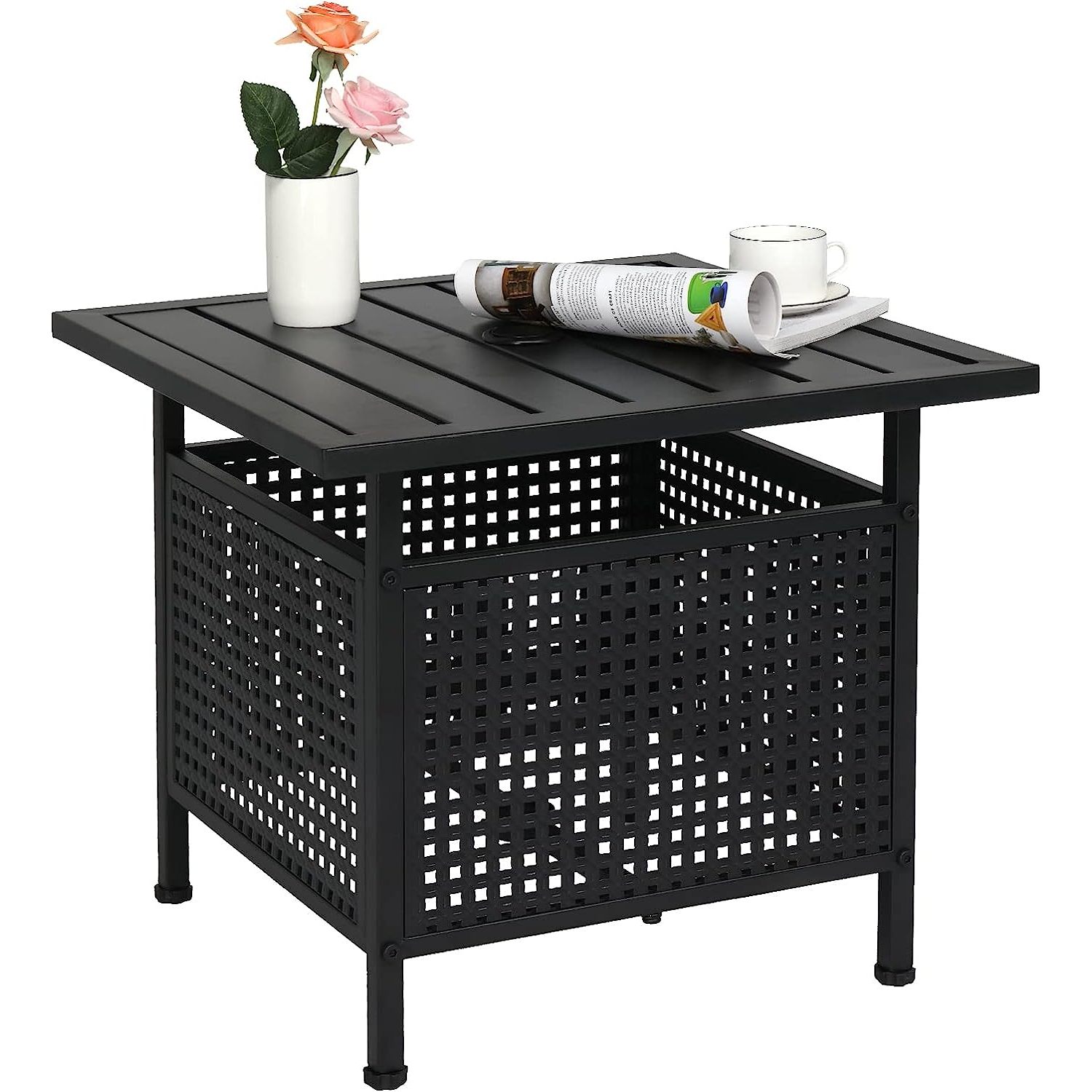 Bilot Patio Side Table with Umbrella Hole 1.57" Umbrella Stand Table, Metal Outdoor Bistro Table Coffee Table End Table for Garden, Pool, Deck