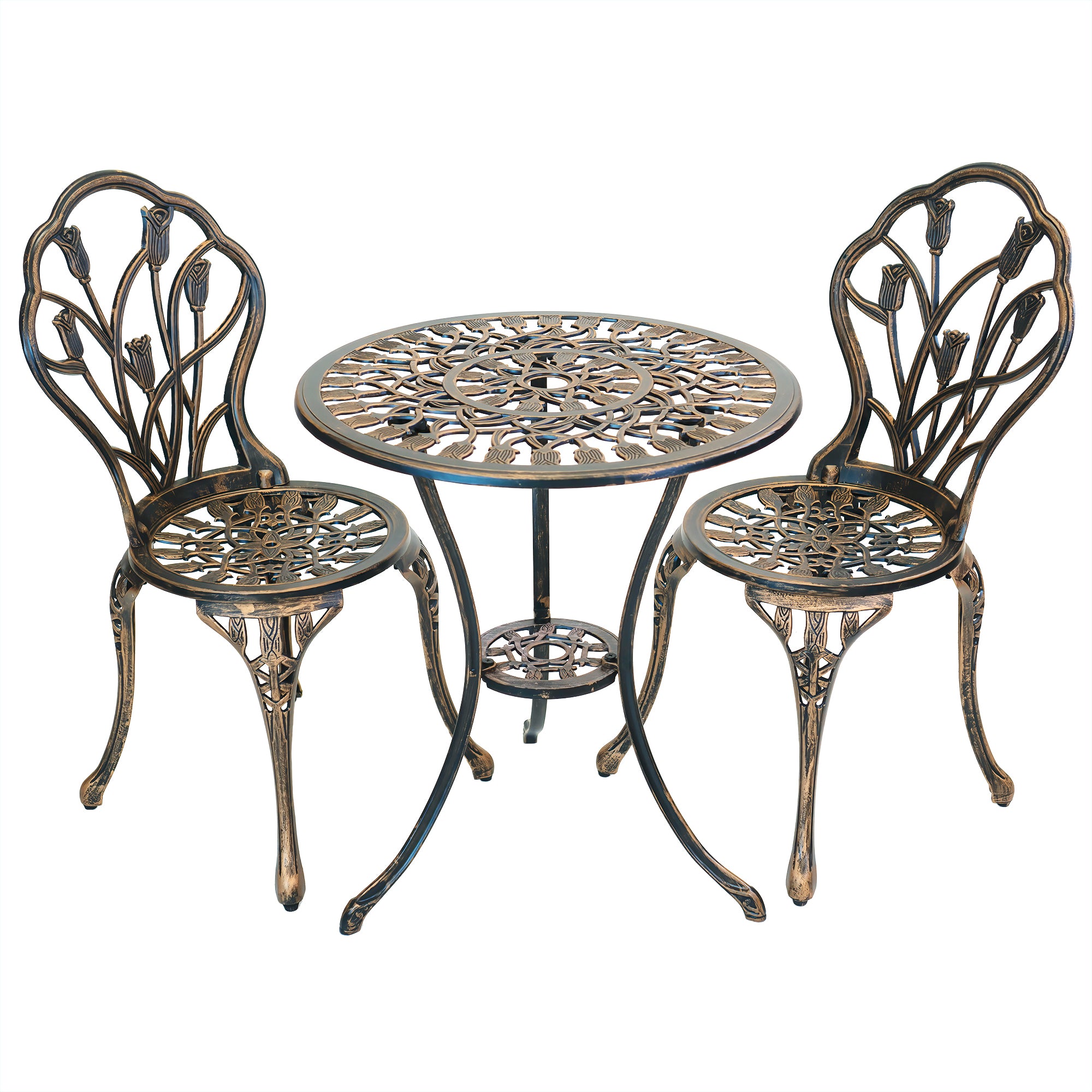 LVUYOYO 3 Piece Outdoor Bistro Round Table Set Cast Aluminum Table and Chairs Patio Furniture Antique Bronze
