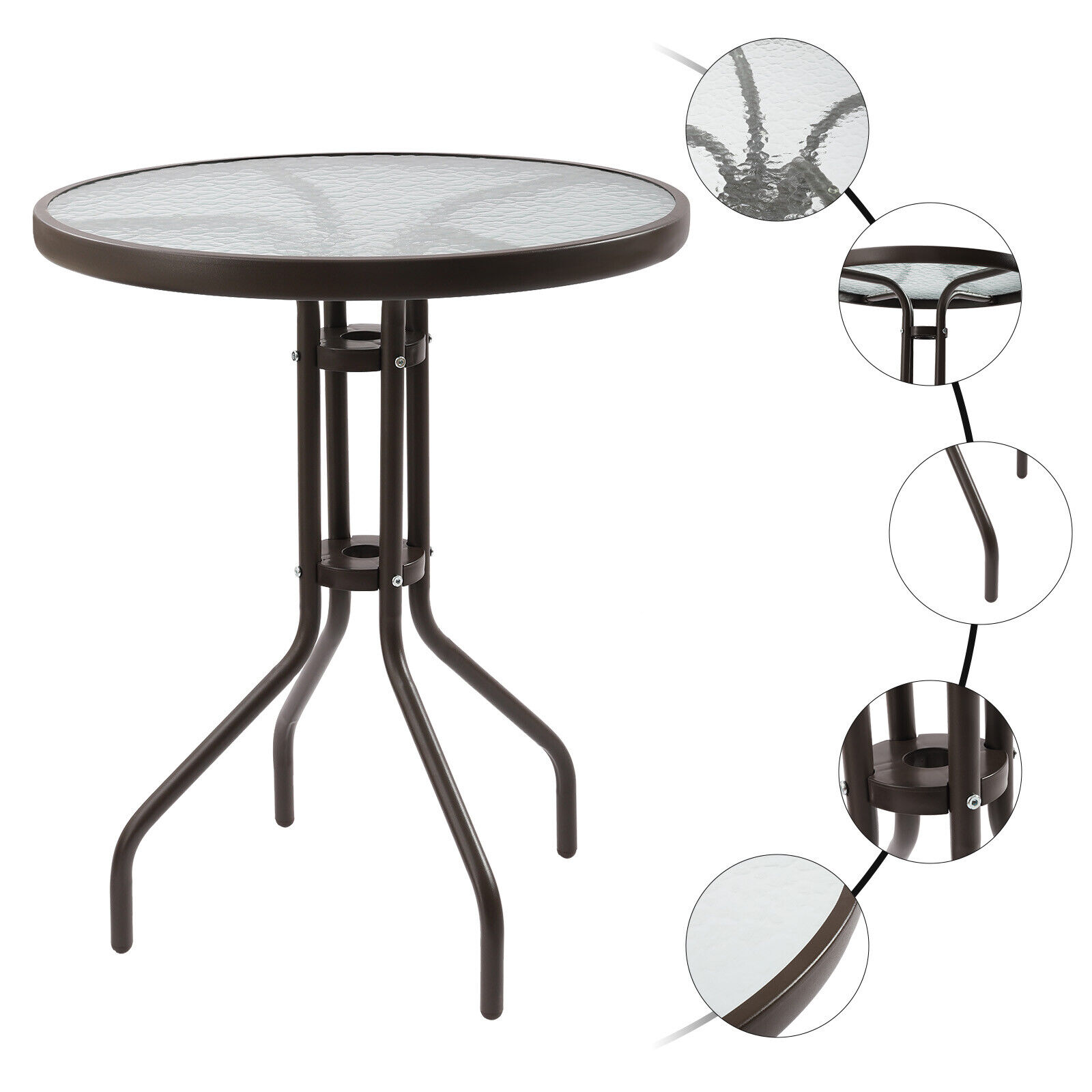 ZhdnBhnos 24'' Outdoor Round Patio Bistro Table Tempered Glass Table Top Balcony Garden Dining Table Coffee Table Furniture