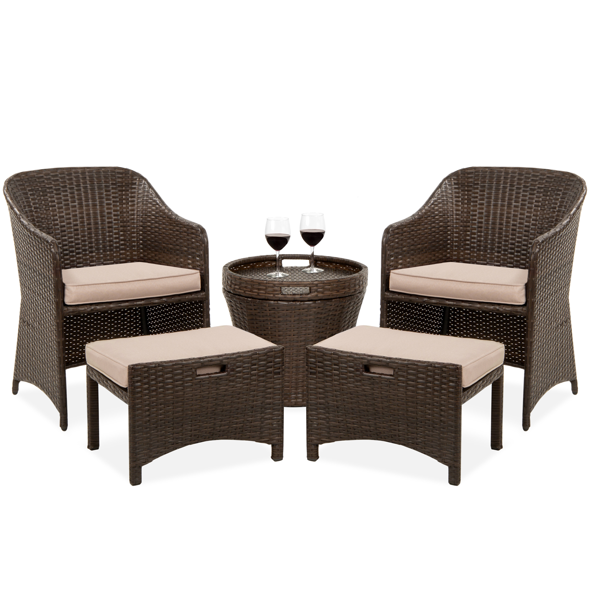 Best Choice Products 5-Piece Outdoor Wicker Patio Bistro Furniture Set w/ Storage Table, No Assembly - Brown