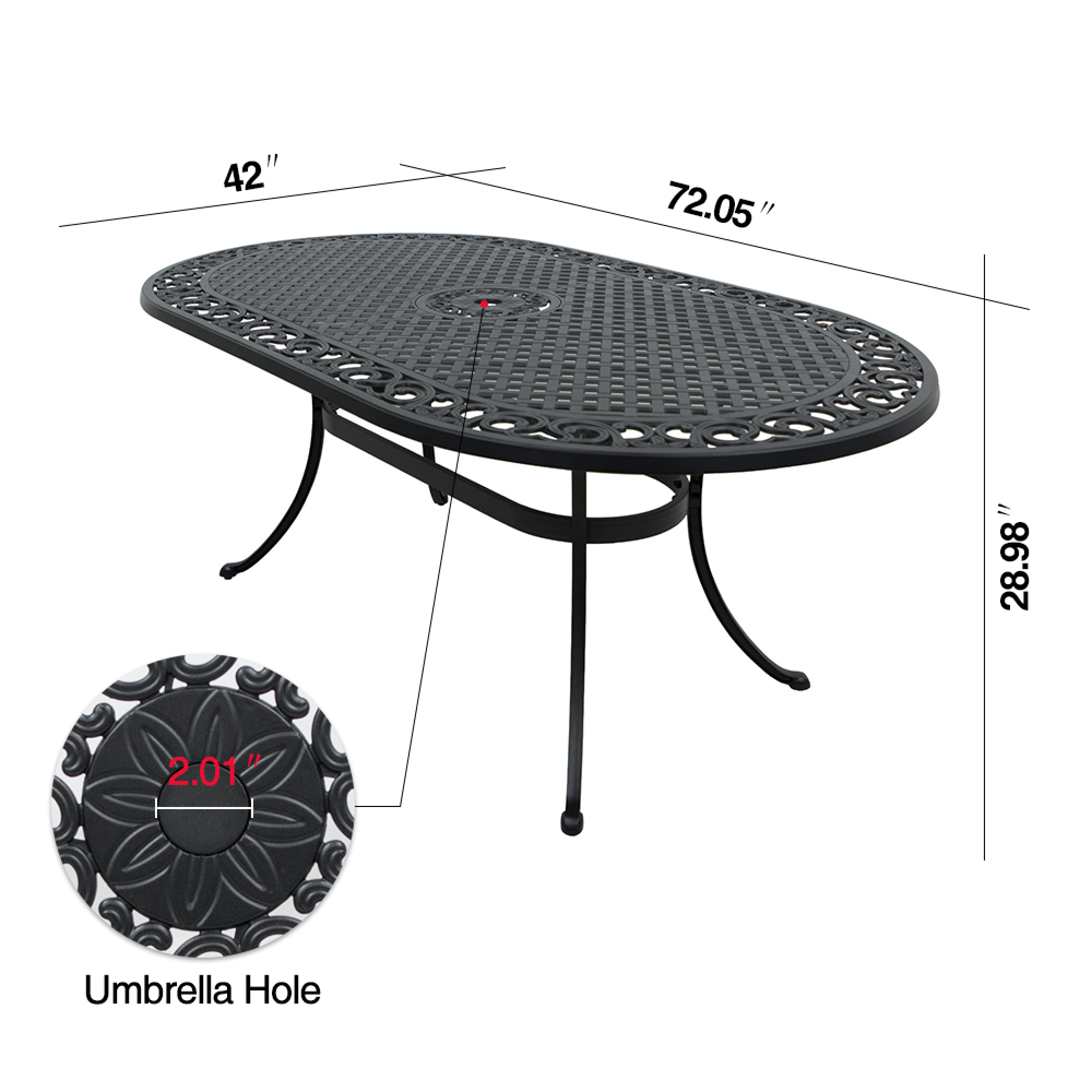 72 Inch Oval Cast Aluminum Patio Table with Umbrella Hole,Round Patio Bistro Table for Garden, Patio, Yard, Black with Antique Bronze at The Edge