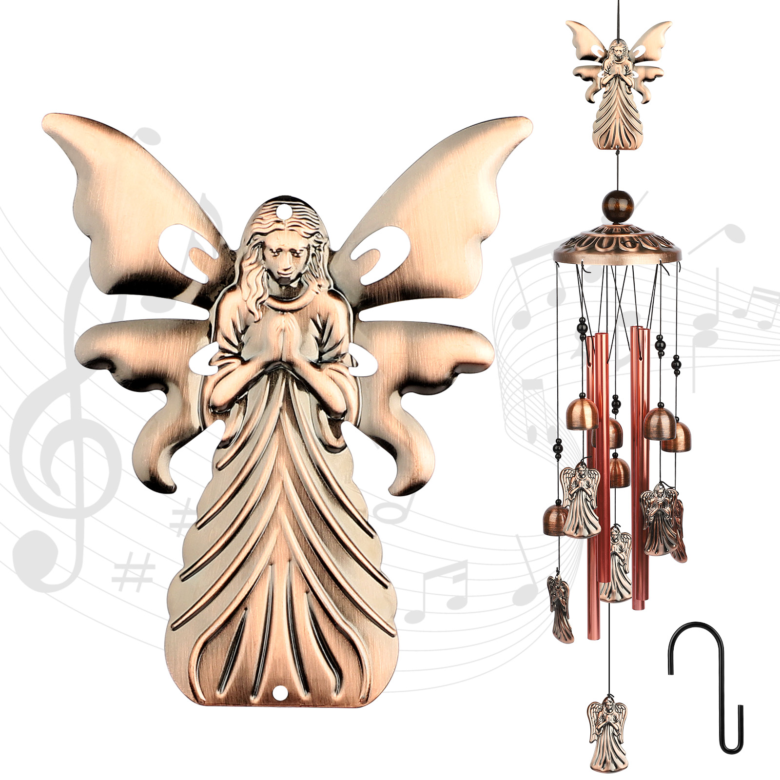 Angel Wind Chimes Outdoor, EEEkit 36'' Memorial Retro Brass Wind Bells with S Hook Waterproof for Garden Patio, Gifts