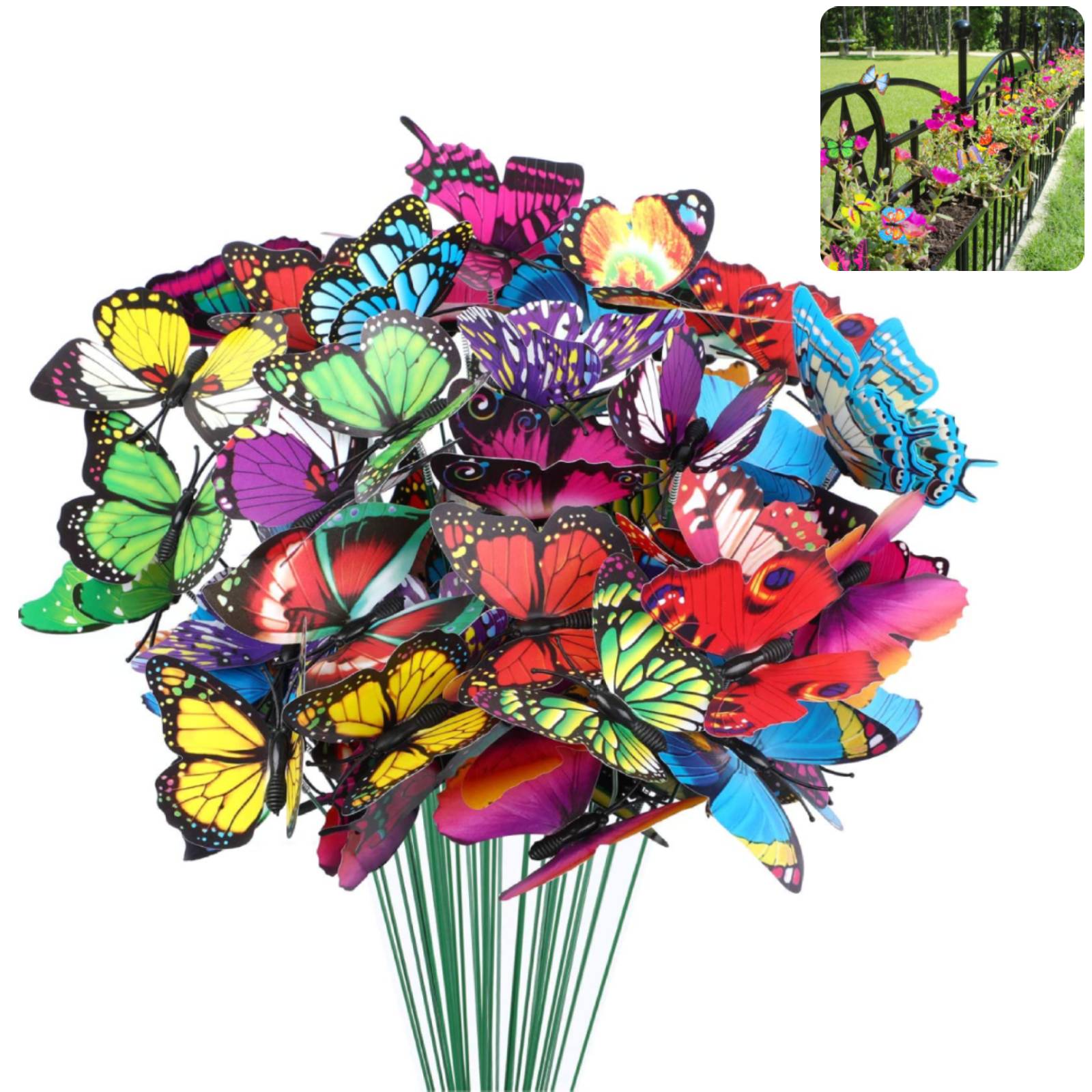 EEEkit 50pcs Garden Butterfly Stakes, 9.8" Waterproof Butterfly Decorations for Outdoor Yard, Patio, Planter, Indoor