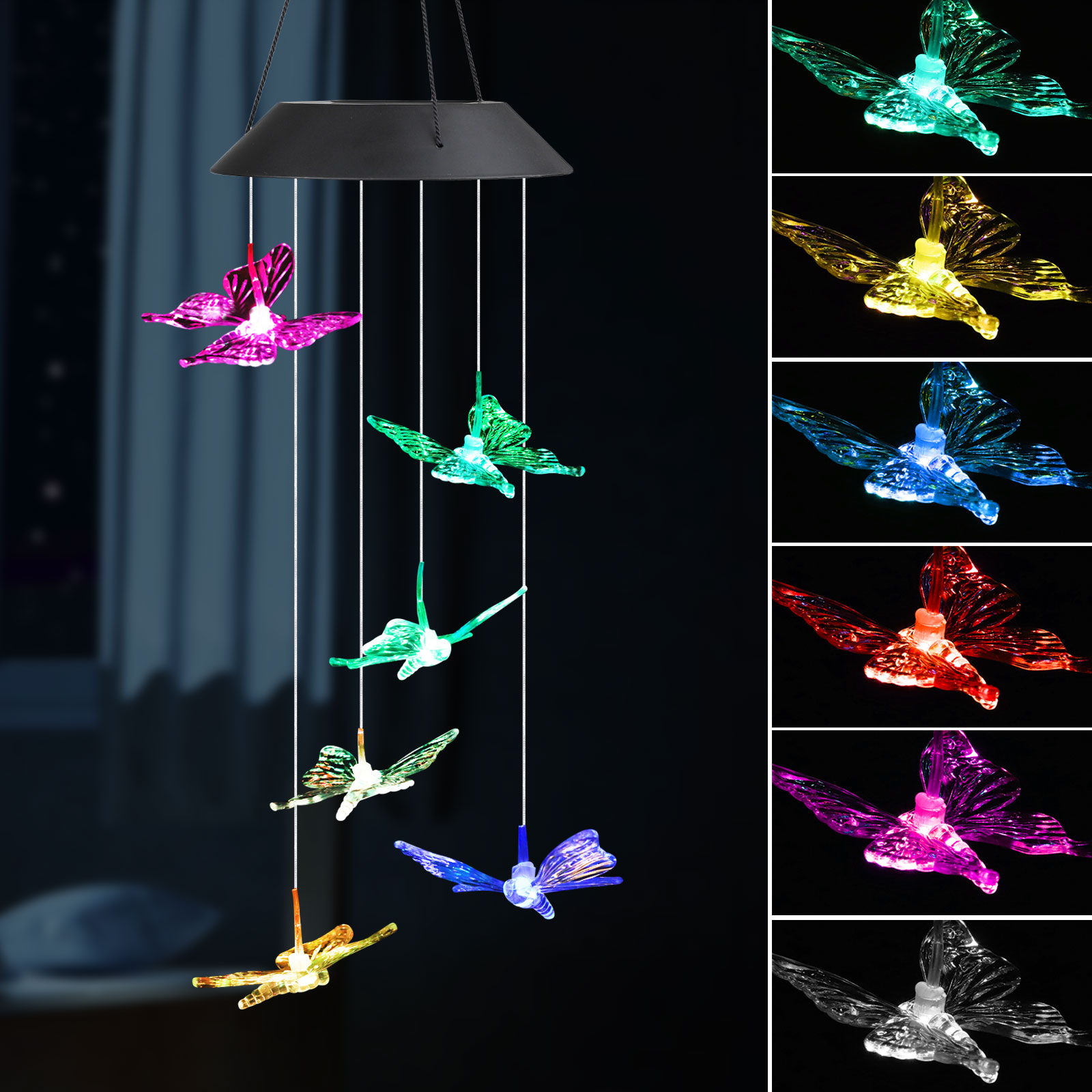 Solar Powered Wind Chimes, EEEkit LED Color Changing Wind Belles Waterproof Decor Lights for Patio Yard Garden, 21''