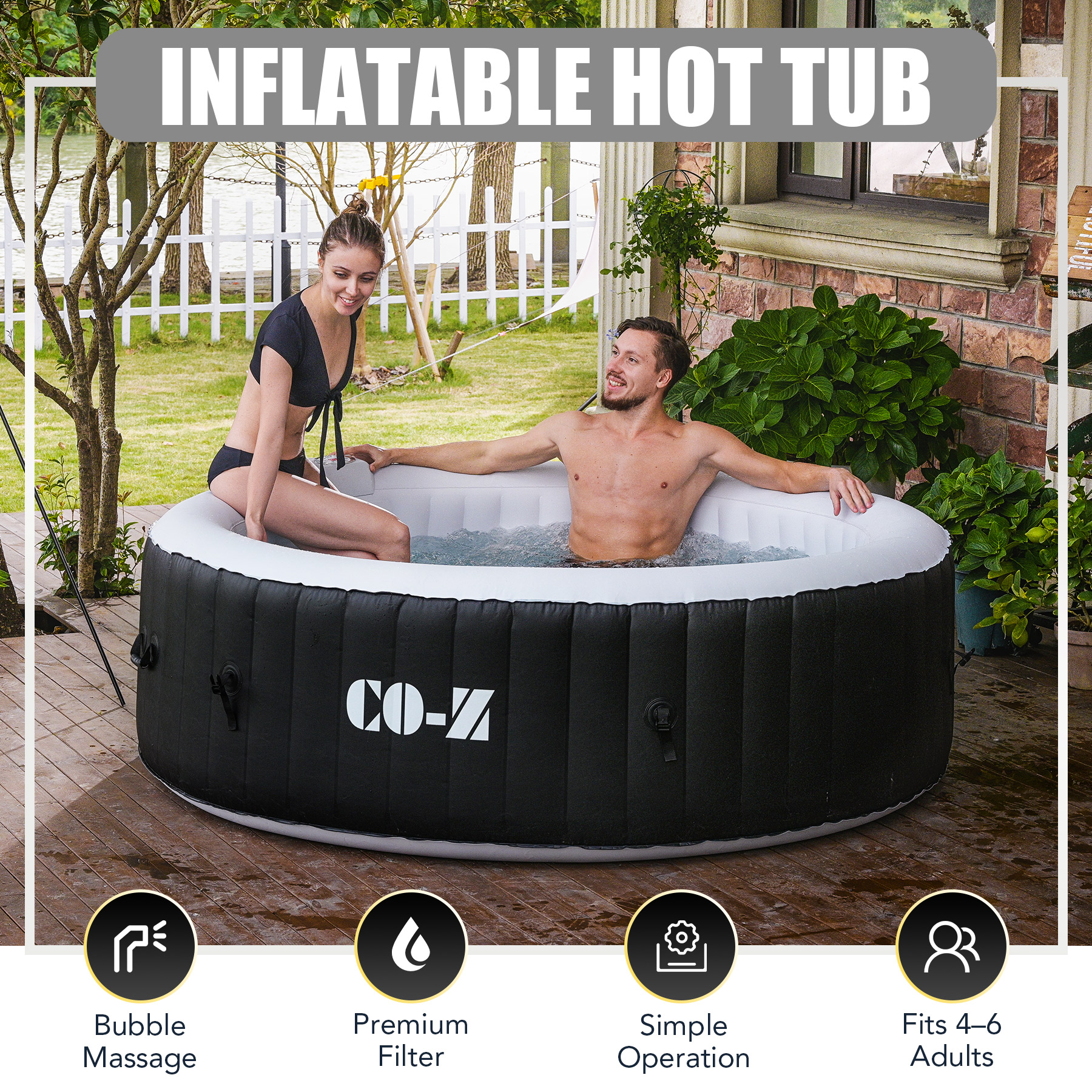 CO-Z 7' Inflatable Hot Tub Portable 4-6 Person Round Spa Tub for Patio Backyard Black