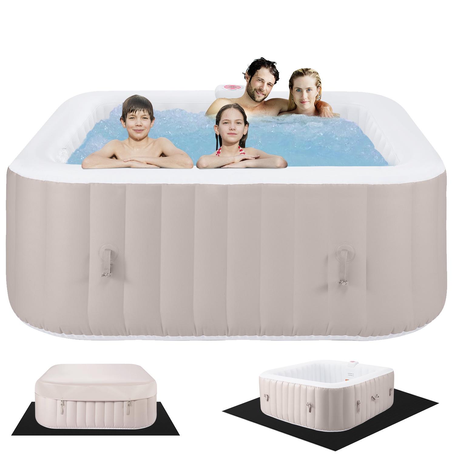 6 Person Inflatable Hot Tub, 73in Upgraded Home Spa Tub with Hidden Machine, 130 Massage Jets, Portable Patio Hot Tub with Storage Bag Lockable Cover Floor Mat, Max 104, Brown