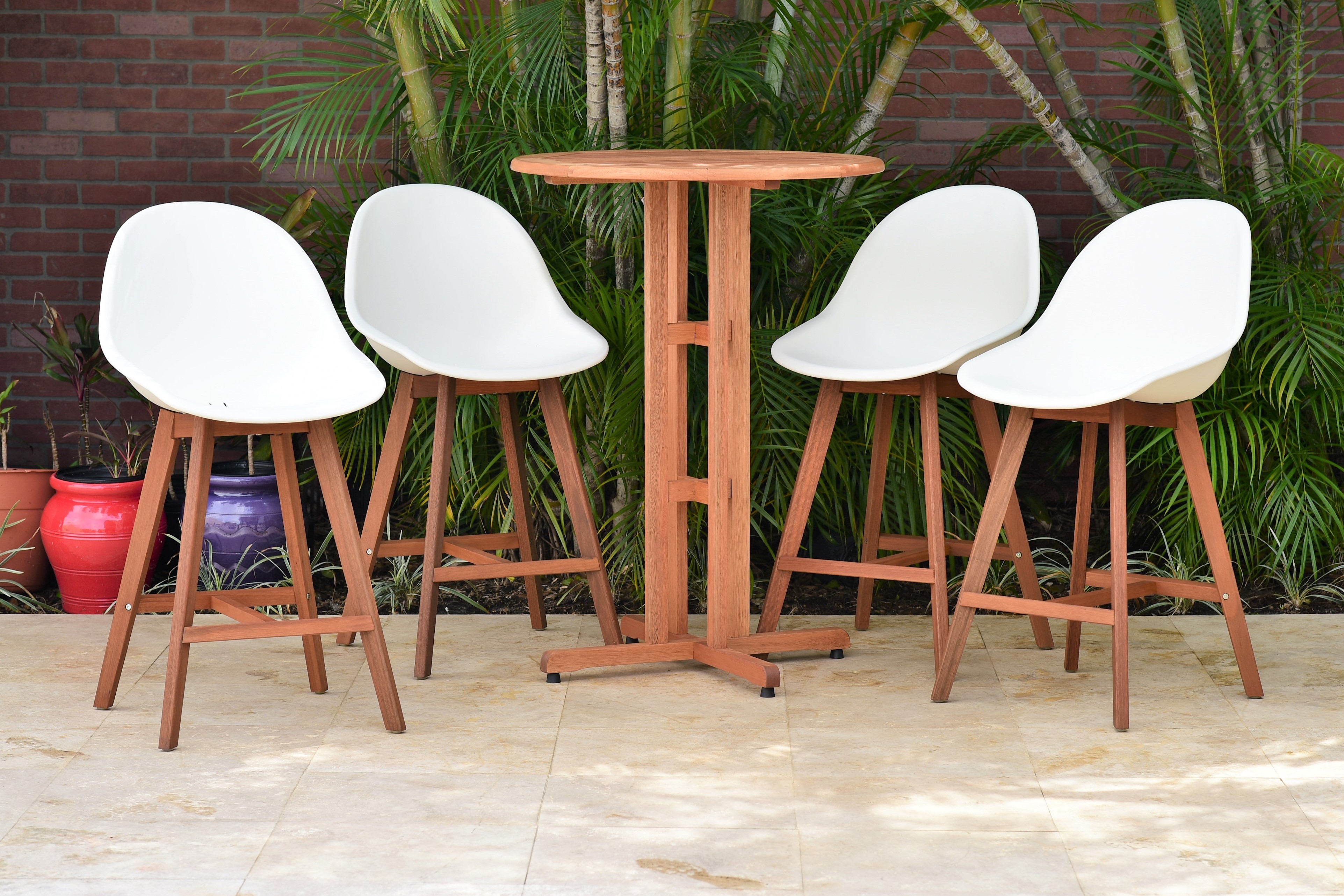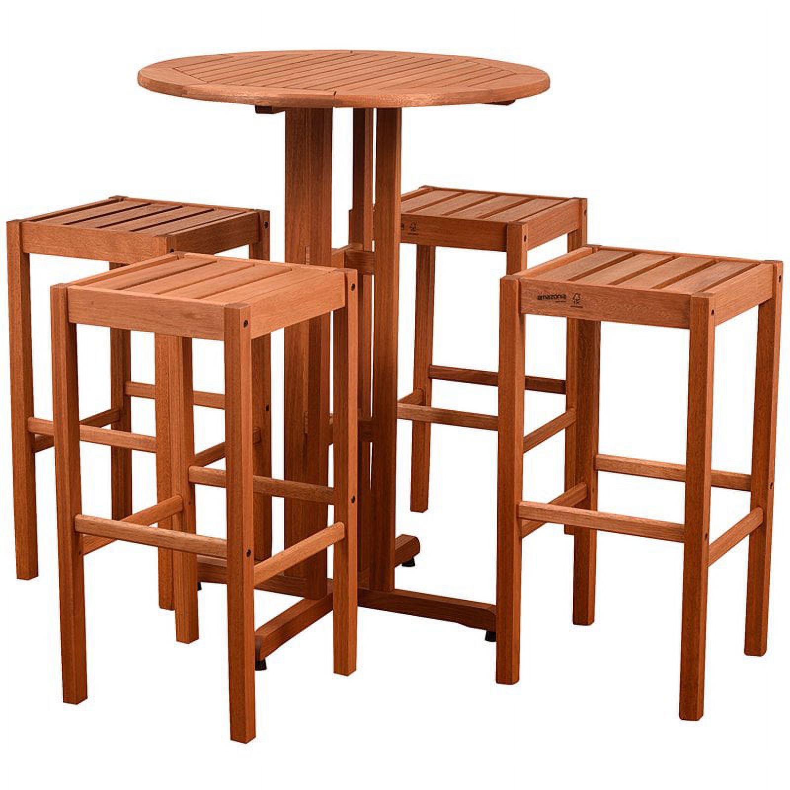 Amazonia Mons Eucalyptus Wood 5 Pieces Round Wood Patio Bar Set, Seating Capacity: 4